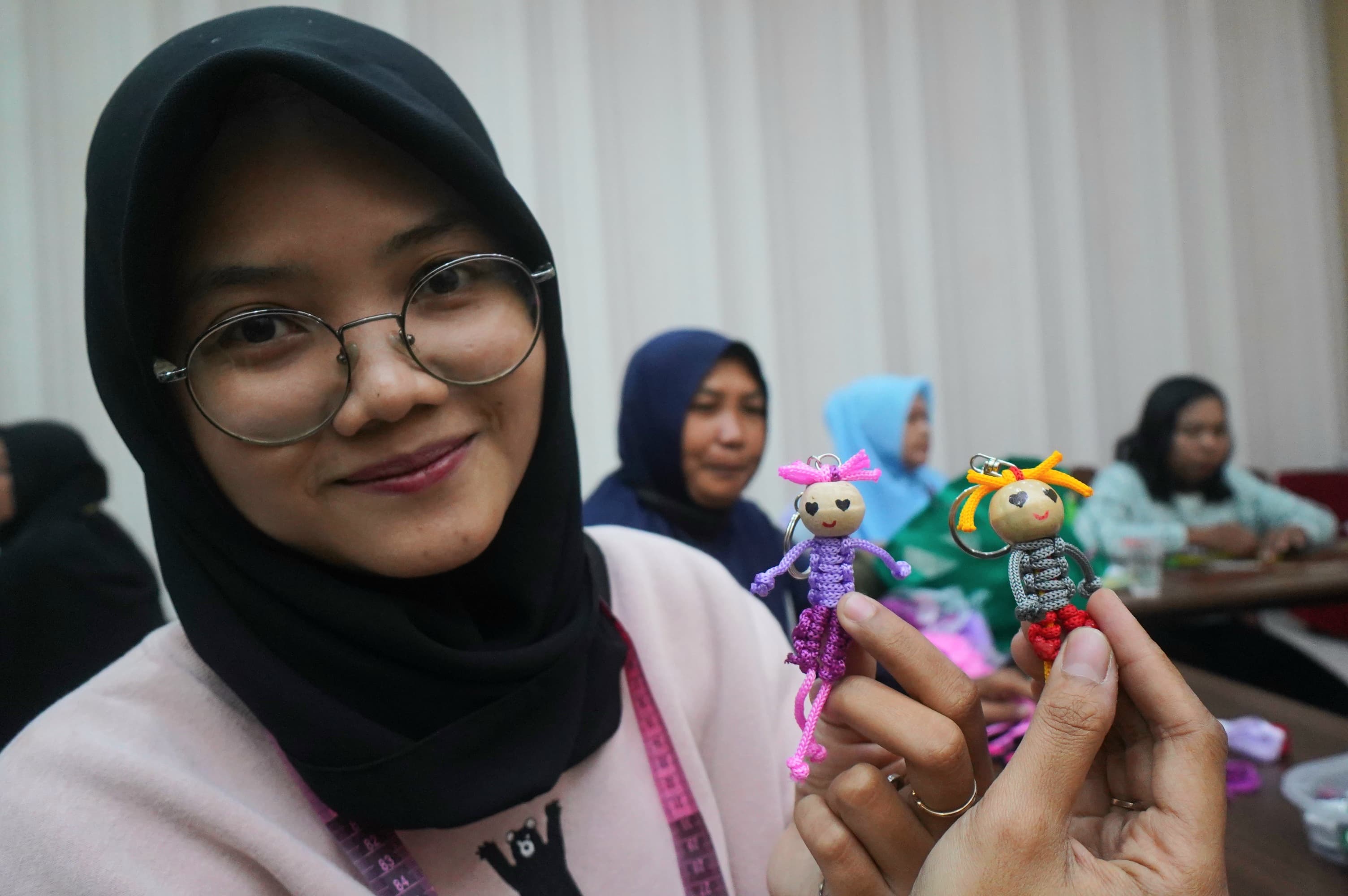 “Sejak awal sudah ikut pelatihan. Saya merasa diperhatikan, senang bisa nambah pengetahuan. Dulu belum bisa, sekarang jadi bisa. Kalau orderan sepi, bisa bikin kerajinan ini untuk tambahan,” ujarnya.