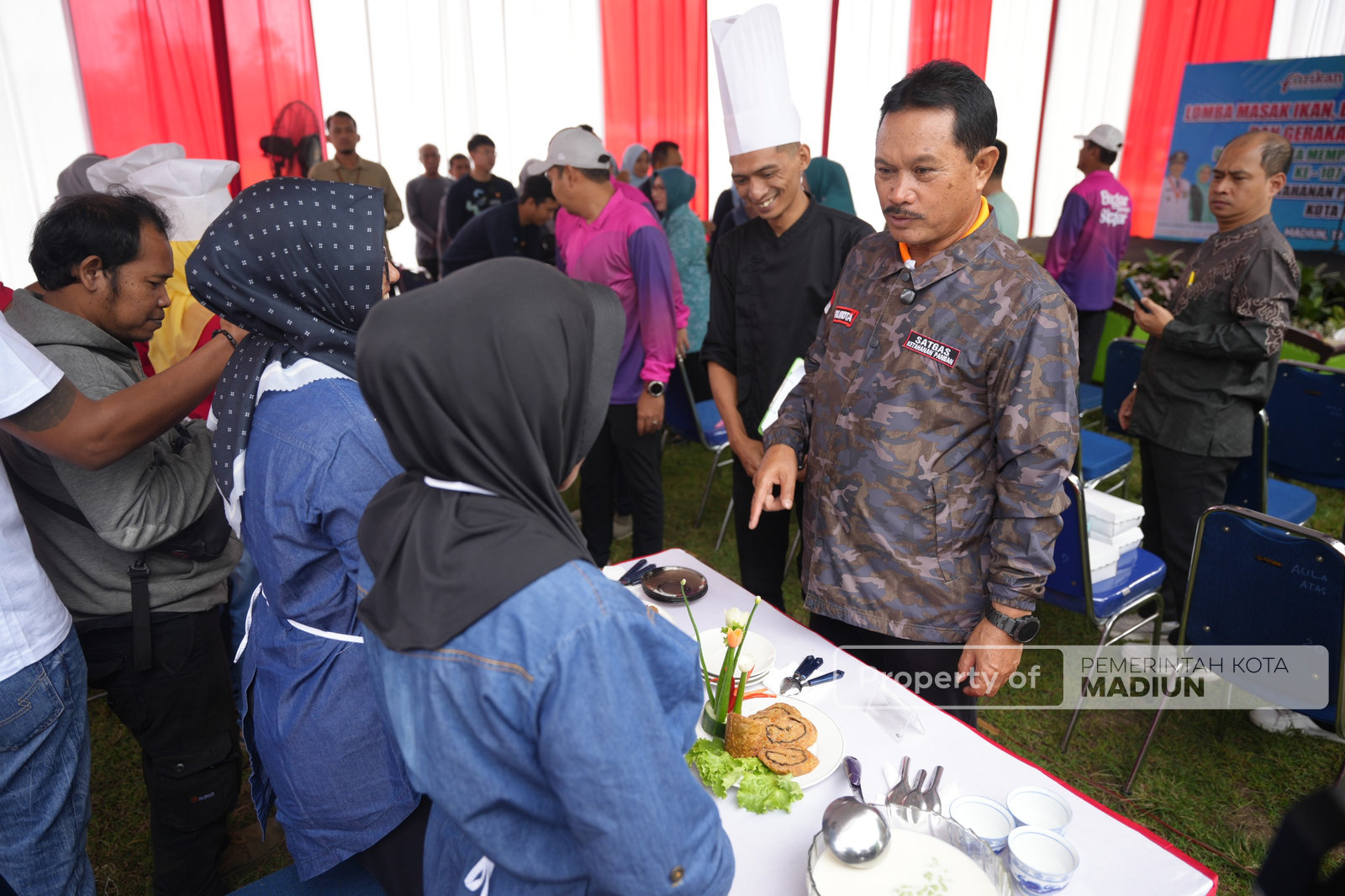 MADIUN – Pemerintah Kota Madiun terus berkomitmen dalam memperkuat ketahanan pangan melalui berbagai program strategis. Salah satu di antaranya adalah pelaksanaan Gerakan Pangan Murah (GPM) yang dikolaborasikan dengan Lomba Masak Ikan dan Bazar Produk Olahan Ikan, yang berlangsung di Lapangan Gulun, Jumat (13/6).