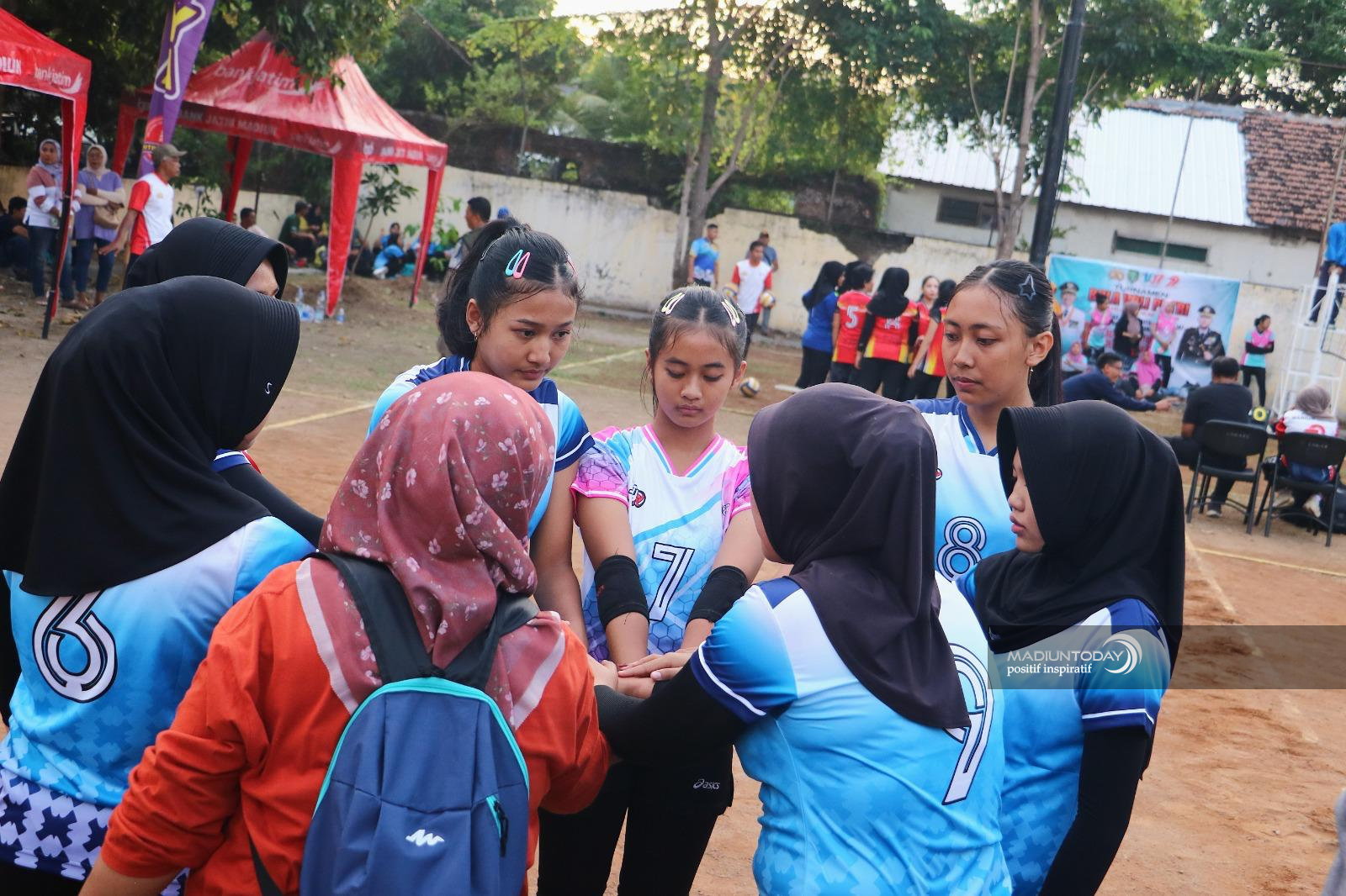 Atlet voli putri dari seluruh kelurahan di Kota Madiun tampil penuh semangat dalam Turnamen Bola Voli Putri Antar Kelurahan, yang digelar dalam rangka Hari Jadi ke-107 Kota Madiun dan Hari Bhayangkara.