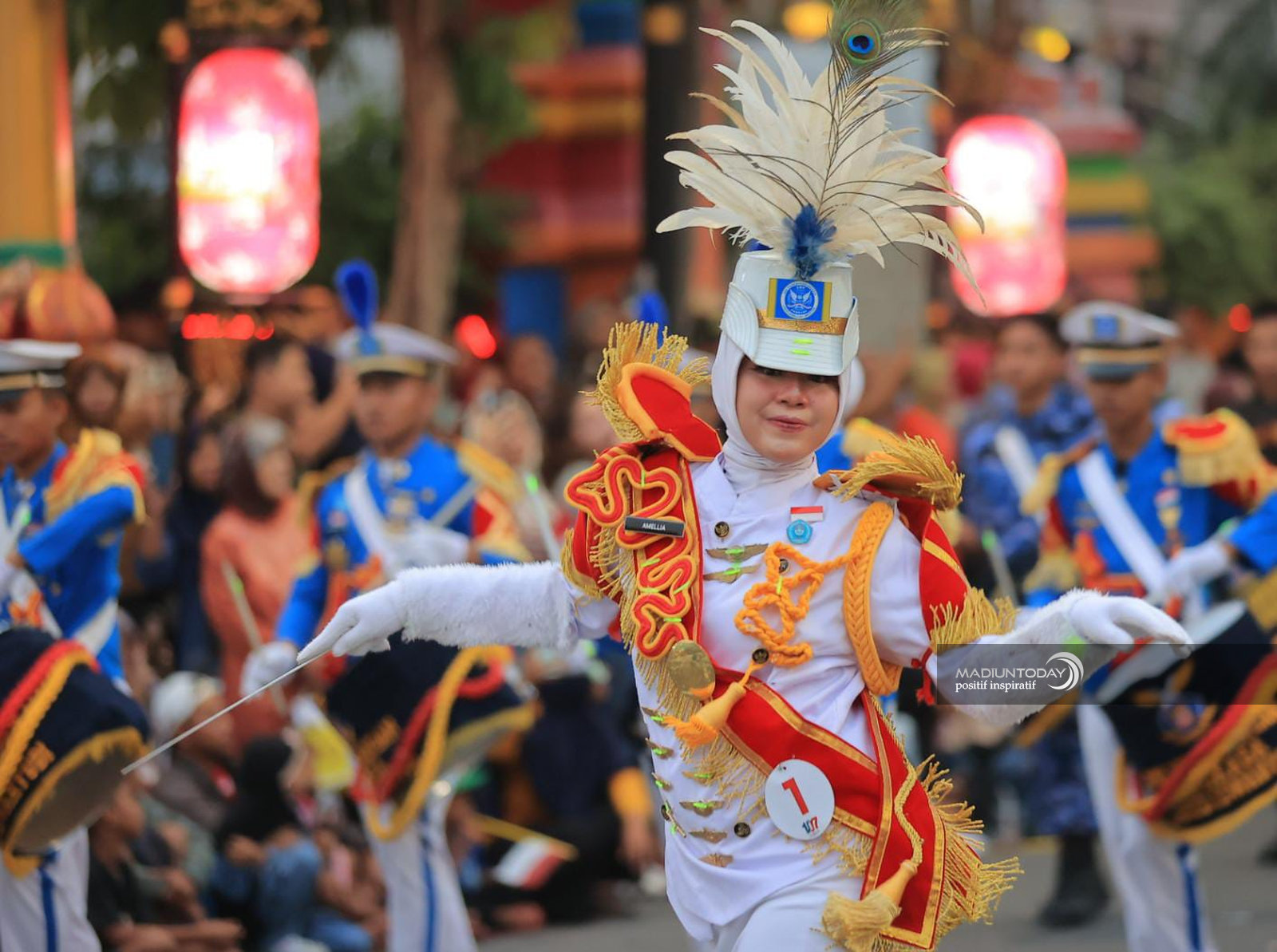 MADIUN - Ribuan warga tumpah ruah di sepanjang Pahlawan Street Center hingga Stadion Wilis, Jumat (20/6), menyambut kemeriahan Parade Drumband dan Street Military Drumband dalam rangka Hari Jadi ke-107 Kota Madiun. Teriakan semangat dan tepuk tangan meriah mewarnai langkah para peserta yang tampil penuh energi dan atraktif.