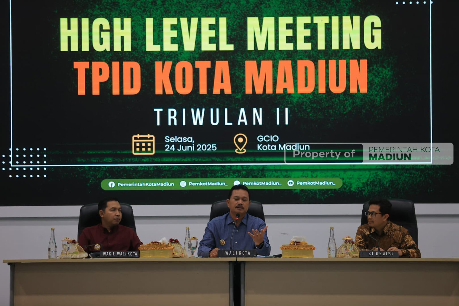 MADIUN - Wali Kota Madiun, Dr. Maidi, menghadiri High Level Meeting (HLM) Tim Pengendalian Inflasi Daerah (TPID) Kota Madiun Triwulan II yang digelar sebagai upaya untuk mengawal kestabilan harga dan menjaga daya beli masyarakat.
