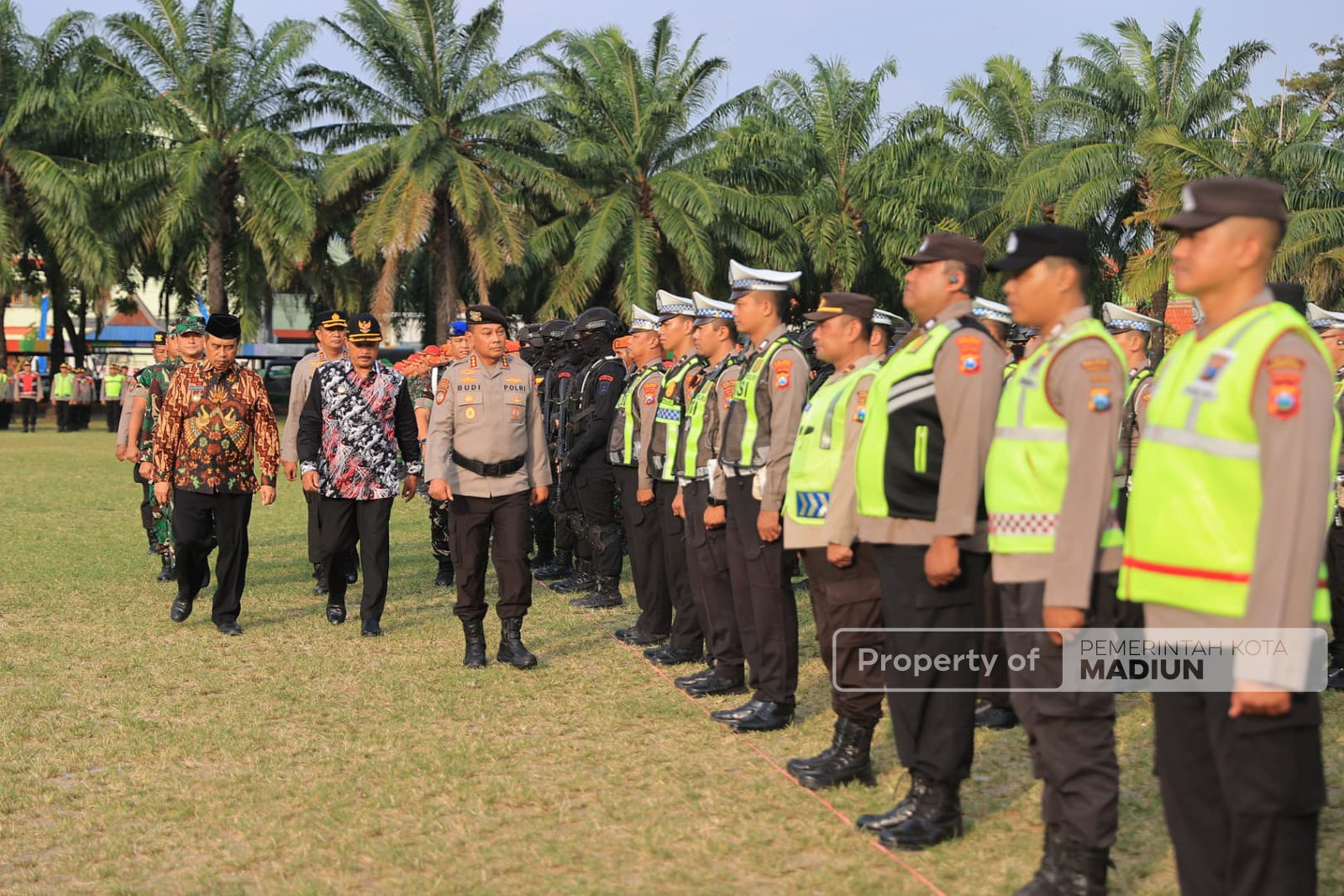 Apel dipimpin langsung oleh Dirsamapta Polda Jawa Timur, Kombes Pol Drs. Budi Karyono. Turut hadir Wali Kota Madiun Dr. Maidi, Bupati Madiun, Danrem 081 Dhirotsaha Jaya, Dandim 0803 Madiun, Kapolres Madiun Kota, serta jajaran Organisasi Perangkat Daerah (OPD) terkait.