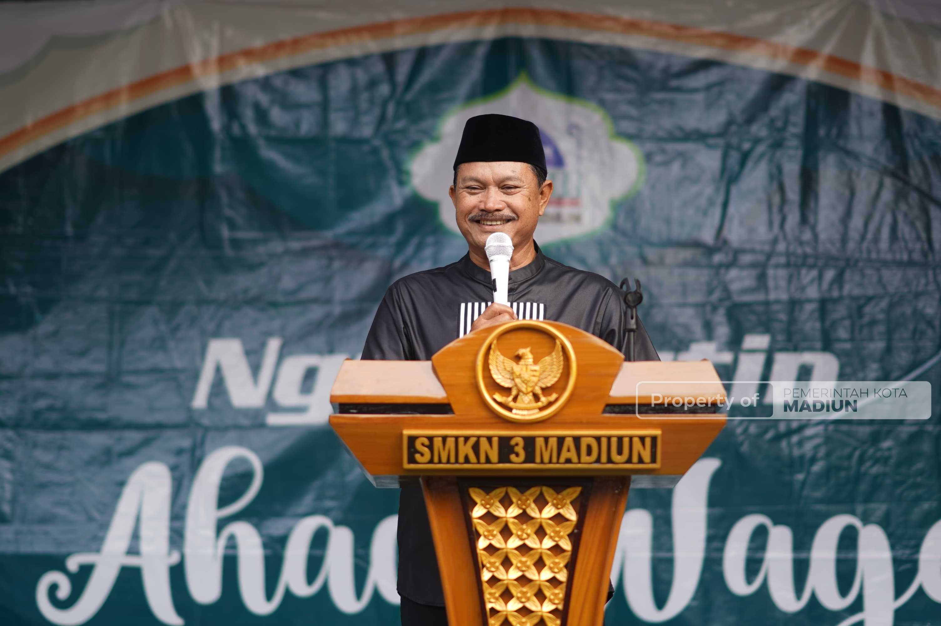 MADIUN – Komitmen Wali Kota Madiun, Dr. Maidi, dalam membangun generasi unggul kembali terlihat dalam kegiatan Pengajian Rutin Ahad Wage yang digelar Asosiasi Guru Pendidikan Agama Islam Indonesia (AGPAII) Kota Madiun, Minggu (6/7), di SMK Negeri 3 Madiun.