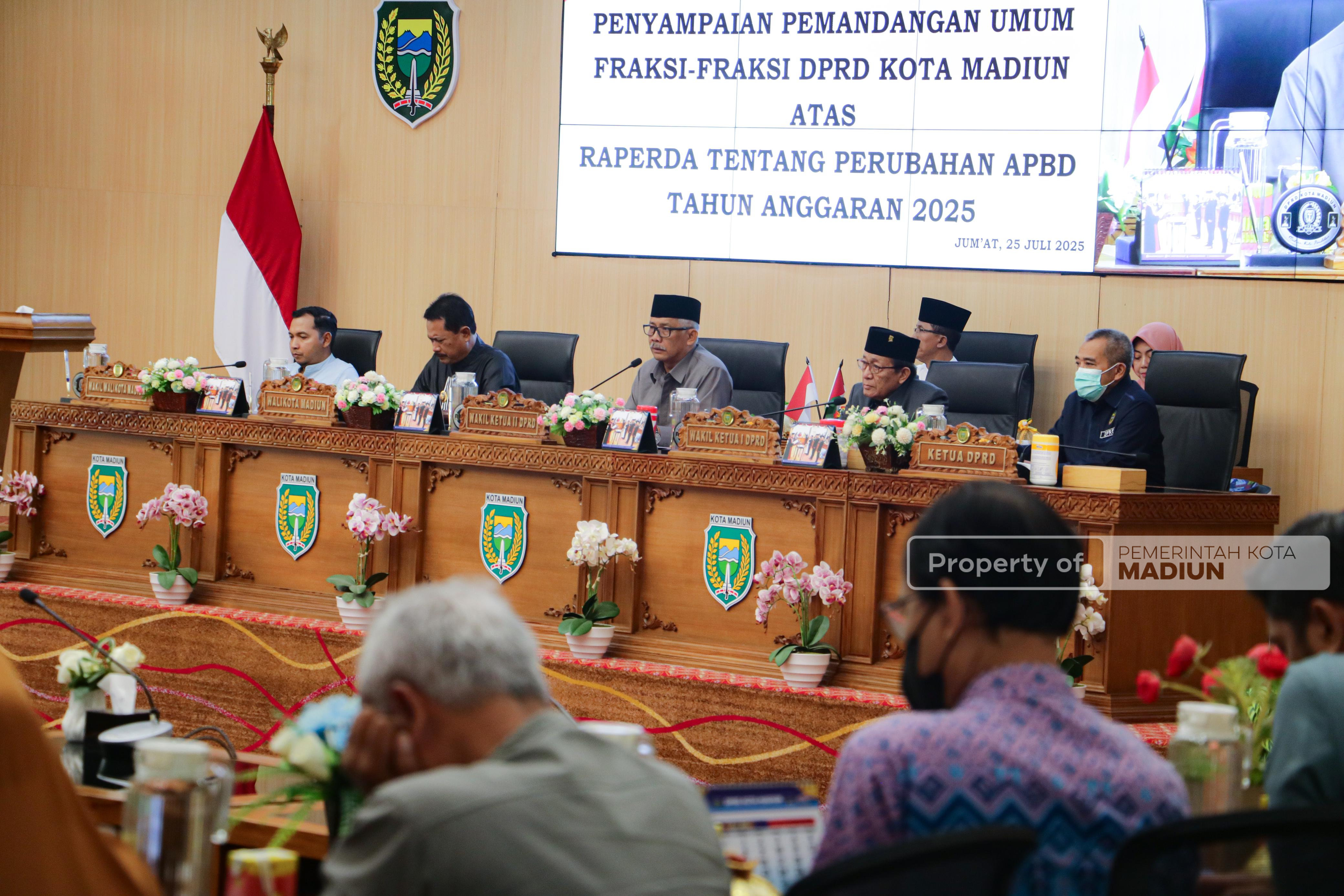 MADIUN – Pembahasan Rancangan Peraturan Daerah (Raperda) tentang Perubahan Anggaran Pendapatan dan Belanja Daerah (P-APBD) 2025 terus bergulir. Dalam rapat paripurna Jumat (25/7), giliran fraksi-fraksi DPRD Kota Madiun menyampaikan pandangan umum (PU) mereka terhadap rancangan P-APBD.