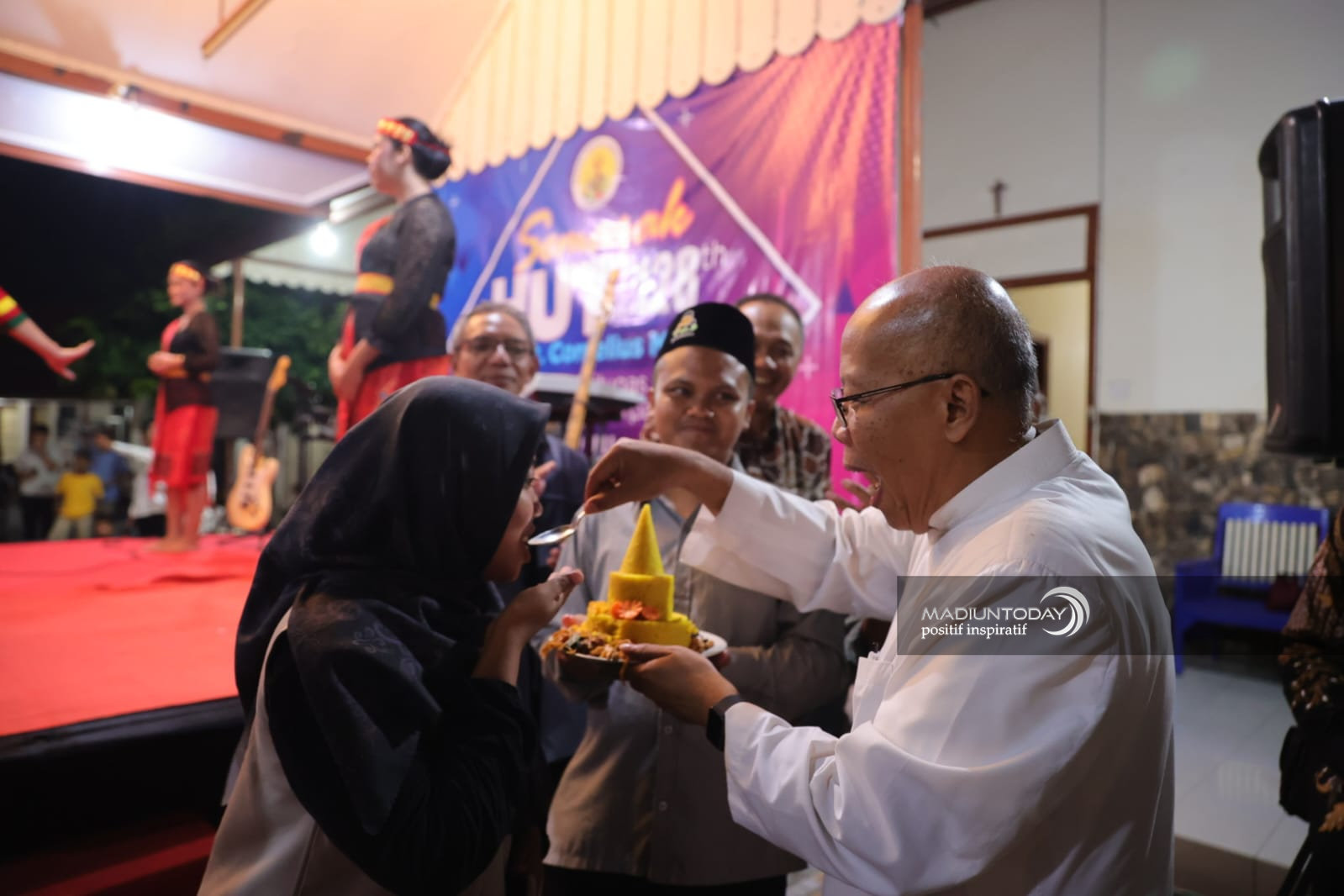 MADIUN – Potret toleransi serta kerukunan umat beragama tergambar dalam acara pesta umat HUT ke-128 Gereja Katolik Santo Cornelius, Senin malam (28/7). Tak hanya diikuti umat Katolik, acara tersebut juga dihadiri umat lintas agama lain.