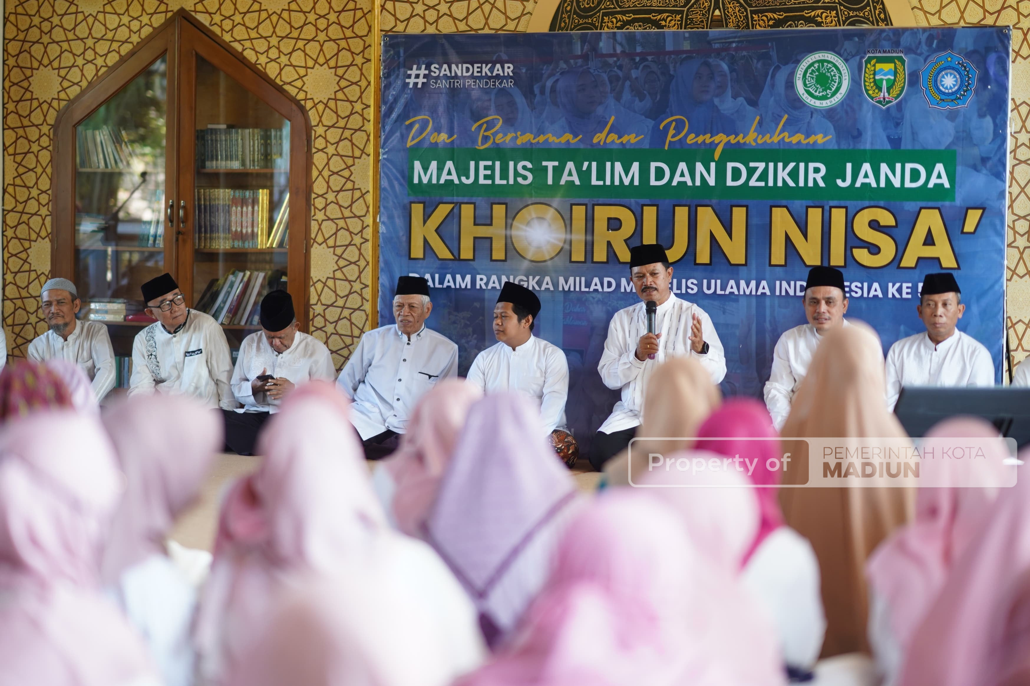 Di kesempatan yang sama, wali kota juga mengukuhkan susunan pengurus Majelis Ta’lim dan Dzikir Khoirun Nisa’. Dalam sambutannya, Wali Kota Madiun menyampaikan bahwa keberadaan majelis taklim memiliki peran strategis dalam memperkuat ketahanan spiritual masyarakat, sekaligus menjadi ruang pemberdayaan bagi perempuan, khususnya para janda.