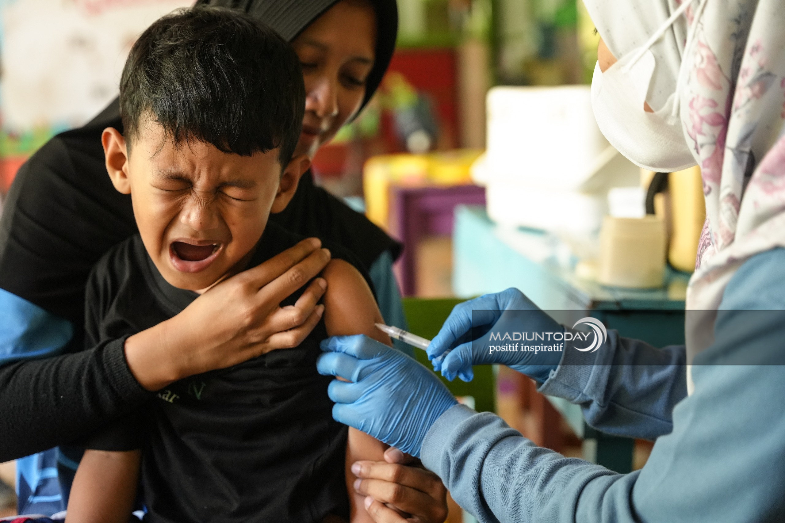 Salah satu kegiatan imunisasi dilaksanakan di SDN 02 Madiun Lor, Rabu(6/8) pagi. Puskesmas setempat memberikan dua jenis vaksin, yaitu Campak Rubella (MR) untuk siswa kelas 1 dan vaksin HPV (Human Papillomavirus) untuk siswi kelas 5.