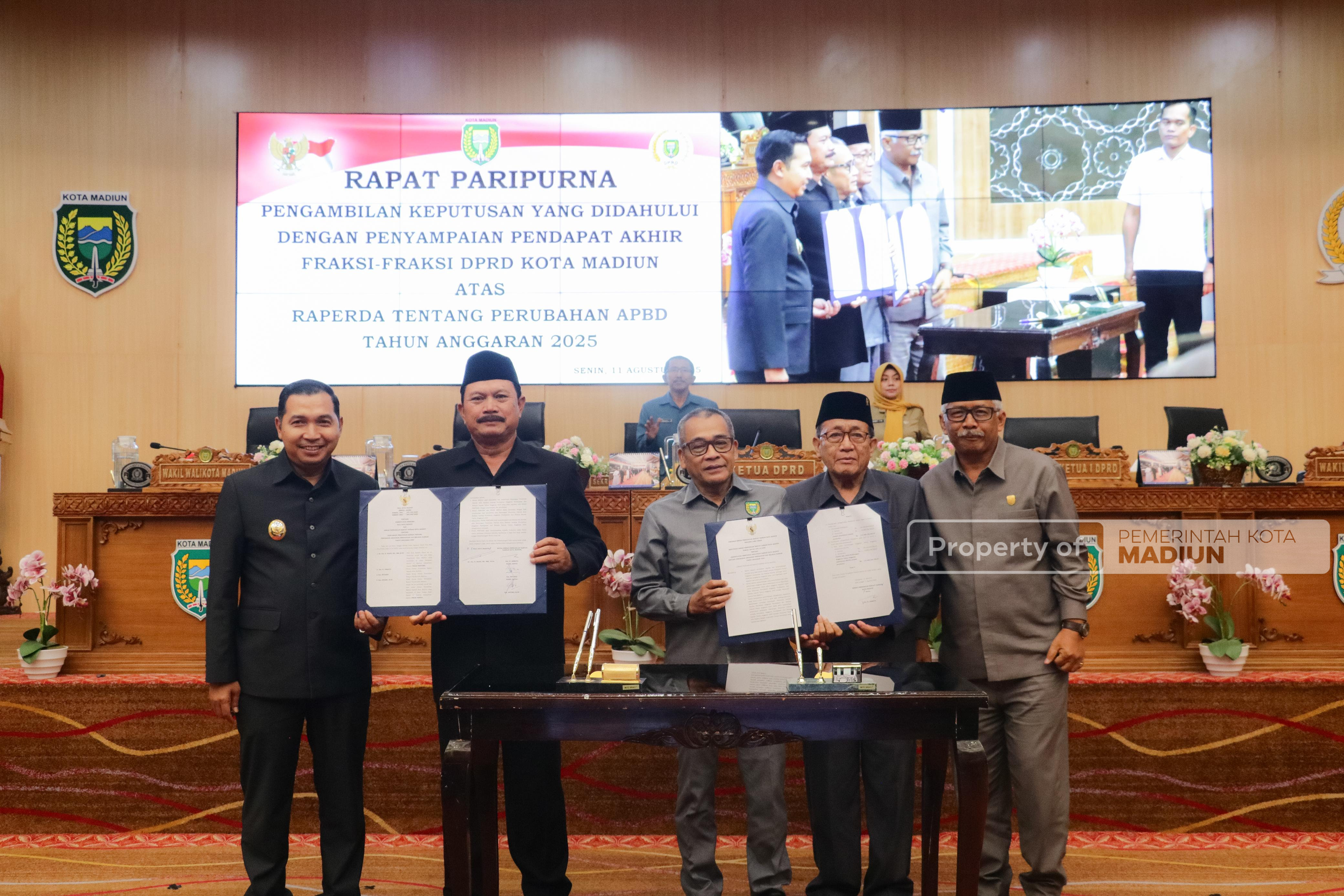 MADIUN – DPRD dan Pemkot Madiun menyepakati Rancangan Perubahan Anggaran Pendapatan dan Belanja Daerah (APBD) Tahun Anggaran 2025. Keputusan itu diambil dalam Rapat Paripurna yang digelar di Gedung DPRD Kota Madiun, Senin (11/8), setelah seluruh fraksi menyatakan persetujuan.