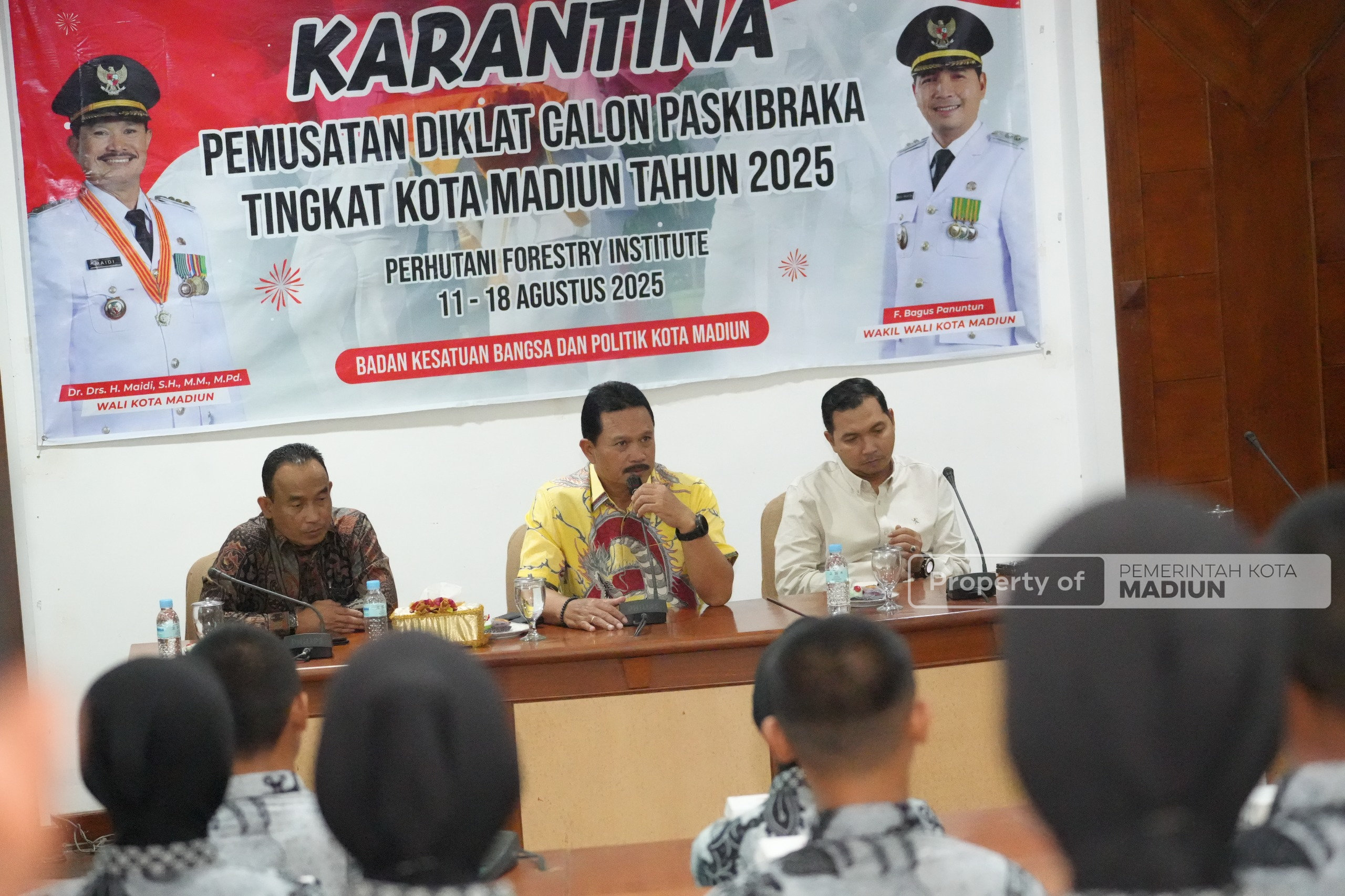 MADIUN - Karantina pemusatan pendidikan dan pelatihan (diklat) calon Pasukan Pengibar Bendera Pusaka (Paskibraka) tingkat Kota Madiun tahun 2025 mendapat perhatian langsung dari Wali Kota Madiun Dr. Maidi dan Wakil Wali Kota F. Bagus Panuntun.