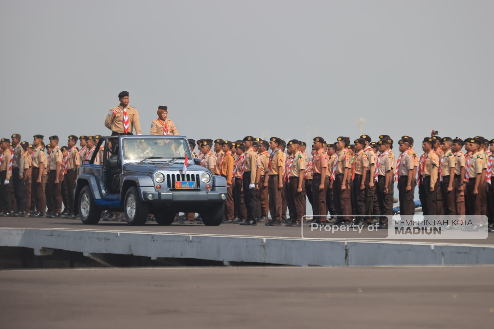Diketahui, Apel Peringatan Hari Pramuka ke-64 dihadiri Pangdam V/Brawijaya Rudy Saladin, Kaskoarmada II Laksamana Muda TNI Isswarto, Wakajati Jatim Hari Wibowo, Dirpolairud Polda Jatim Kombes Pol. Dr. Arman Asmara Syarifuddin dan para wali kota dan bupati se-Jatim. Termasuk Wali Kota Madiun Dr. Maidi