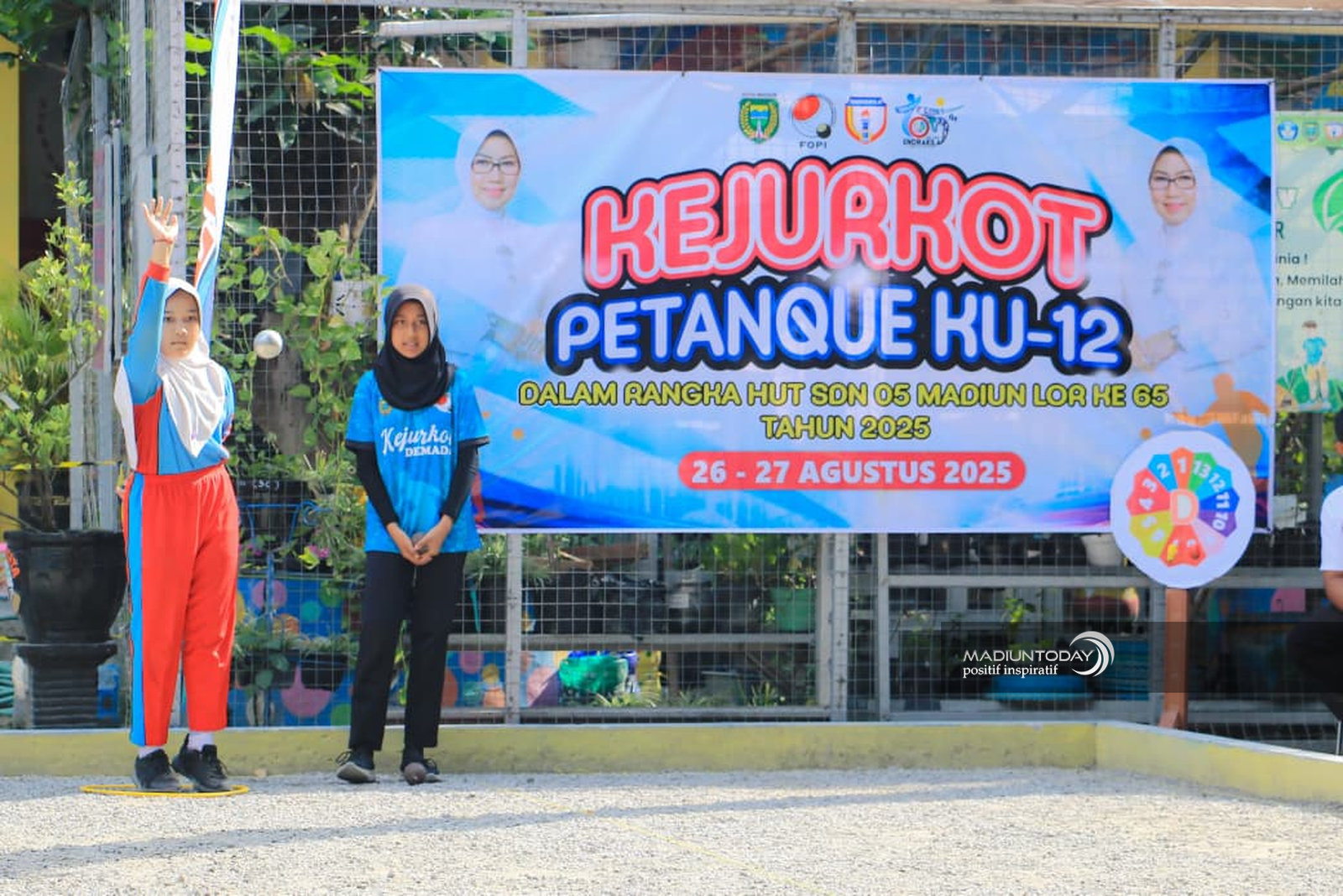MADIUN – Sorak sorai pelajar mewarnai halaman SDN 05 Madiun Lor, Selasa (26/8). Sebanyak 80 siswa dari 16 SD/MI saling adu ketangkasan dalam Kejuaraan Kota (Kejurkot) Petanque 2025 yang digelar meriah sebagai rangkaian HUT ke-65 sekolah tersebut. Kejuaraan berlangsung selama dua hari, 26–27 Agustus 2025.
