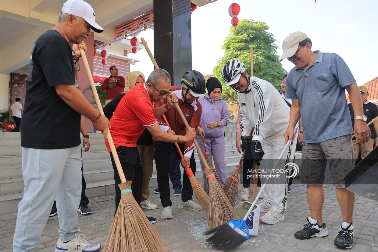 Aksi kerja bakti itu dipimpin langsung Wali Kota Madiun Dr. Maidi.