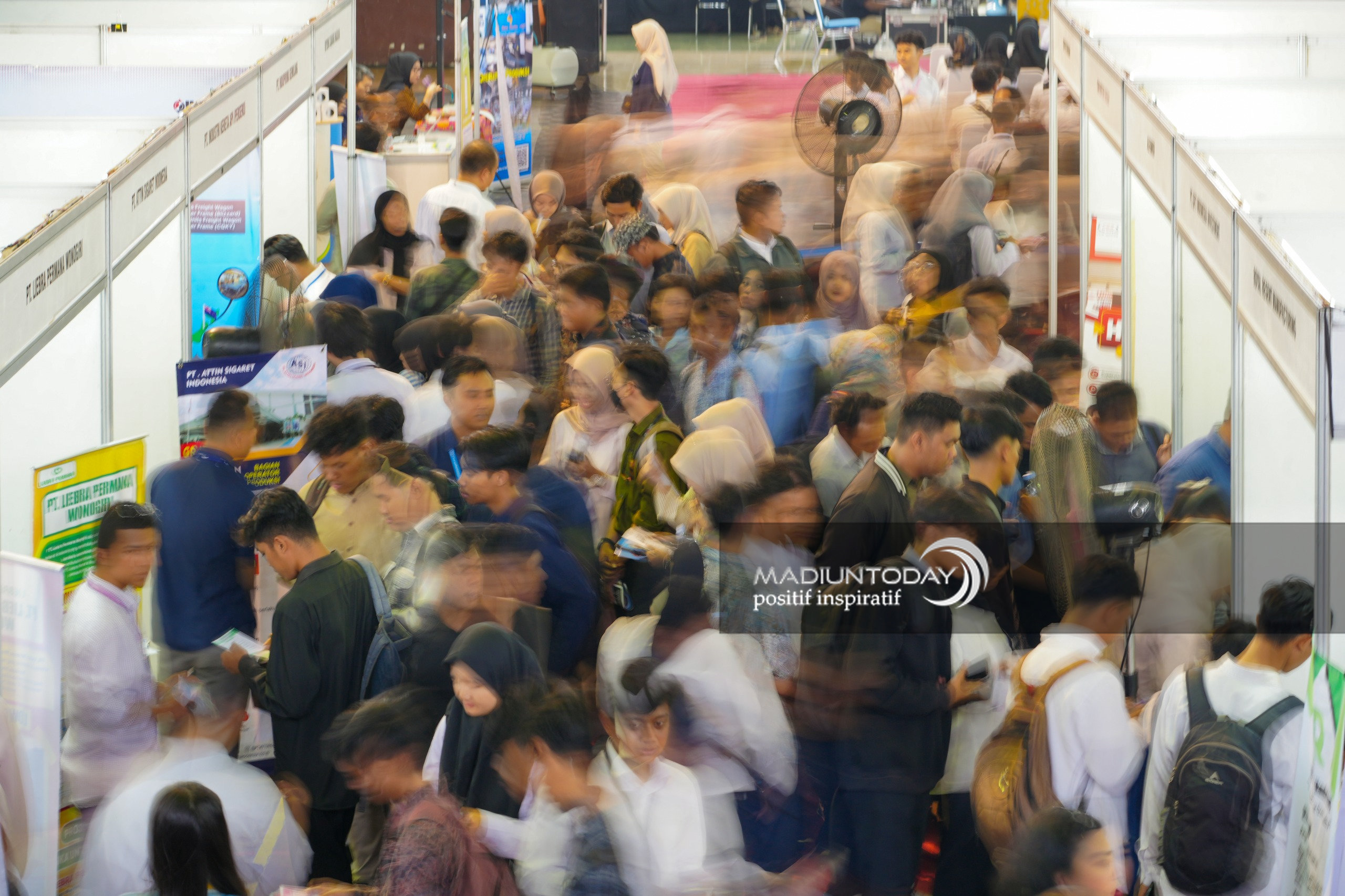 MADIUN – Ratusan pencari kerja memadati Naker Fest 2025 di Gor Wilis, Kota Madiun, Selasa, (30/9). Event yang digelar oleh Dinas Tenaga Kerja, Koperasi dan Menengah Kota Madiun ini menghadirkan 39 perusahaan dari berbagai daerah. Tak tanggung-tanggung total ada 2.058 lowongan pekerjaan secara offline serta 1.424 lowongan online.