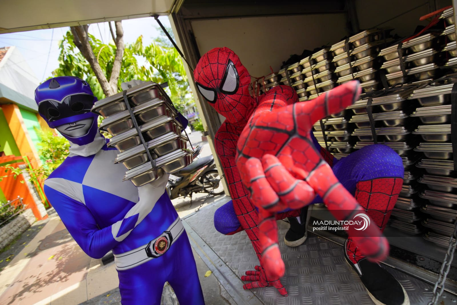 Ranger Biru dan Spiderman turun gunung antar MBG