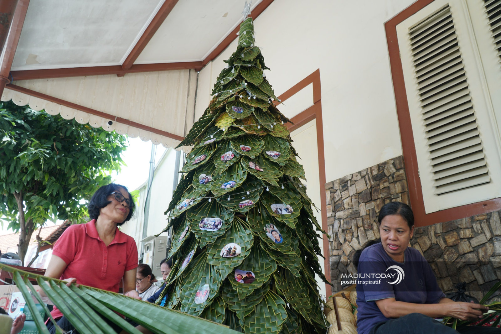 MADIUN - Perayaan Natal di Paroki Santo Cornelius Madiun tahun ini tampil berbeda dengan menghadirkan pohon Natal bertema kearifan lokal. Pohon Natal tersebut dibuat dari daun blarak atau daun kelapa sebagai wujud kreativitas umat dalam memanfaatkan potensi lingkungan sekitar.