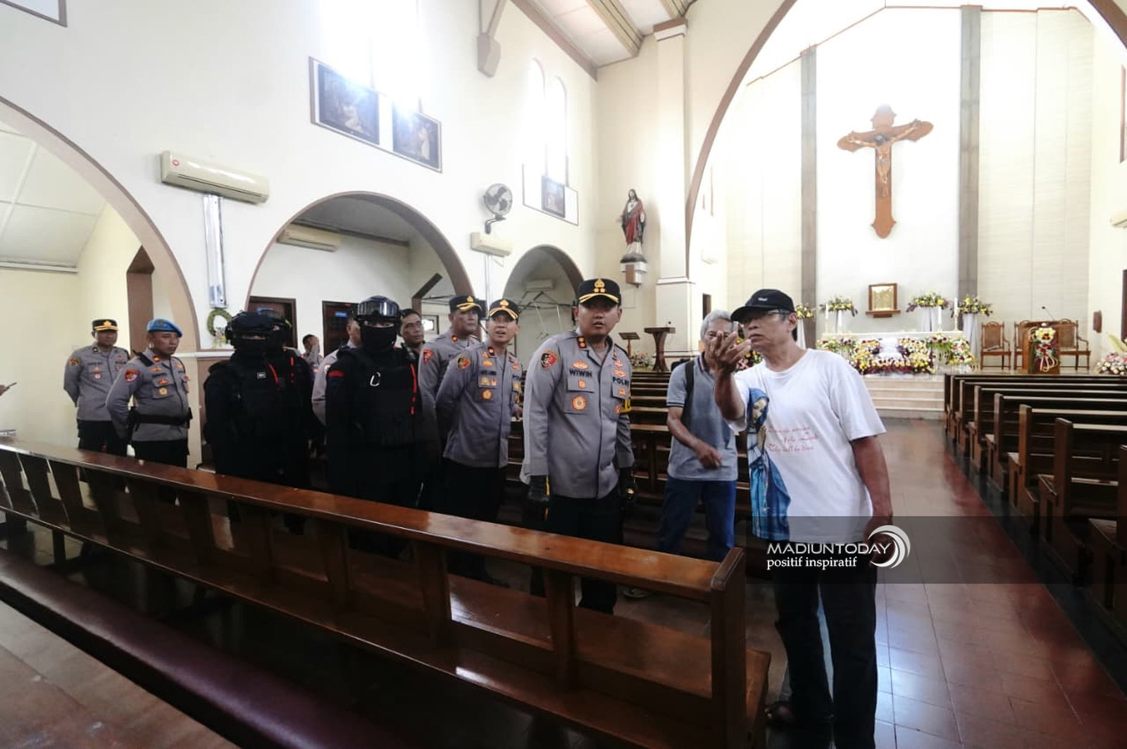 Kapolres Madiun Kota AKBP Wiwin Junianto Supriyadi mengatakan, sterilisasi lokasi ibadah telah dilakukan beberapa hari sebelumnya. Pihak kepolisian juga telah menyiapkan skema pengamanan guna memberikan rasa aman dan nyaman bagi umat Kristiani yang melaksanakan misa.