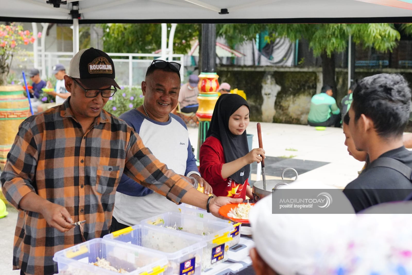 Alianto tampak enjoy. Padahal, semua makanan yang dibagikan diolahnya sendiri bersama istri dan karyawannya. Setelah kegiatan juga masih harus mencuci piring dan lainnya. Setiap kali kegiatan juga harus bongkar pasang tenda. Namun, dia ikhlas melakukannya. Demi satu prinsip yang dia pegang. ‘Mumpung masih bisa berbagi, berbagilah meski semampunya’. (ws hendro/agi/madiuntoday)