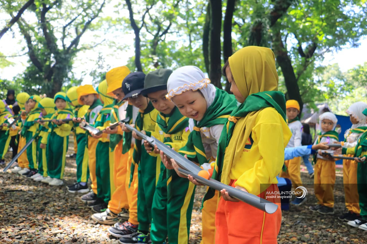 Mengenakan balutan hasduk Hizbul Wathan (HW), anak-anak mengikuti berbagai permainan edukatif di alam terbuka aset Perumdam Tirta Taman Sari Kota Madiun itu. Kawasan tersebut memang pas untuk pembelajaran ruang kelas. Terbukti, peserta tampak antusias. Tercatat, sebanyak 606 anak tumpah ruah di ruang terbuka hijau tersebut. Didampingi 102 guru bersama orang tua, mereka diajak mengenal kemandirian lewat cara yang paling mereka sukai yaitu bermain.
