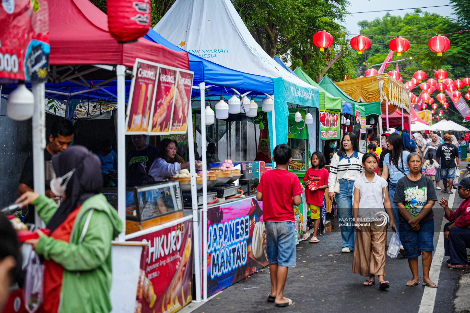 Deretan stan berjajar rapi menawarkan beragam sajian khas, mulai dari kue keranjang yang selalu jadi buruan hingga aneka hidangan yang menggoda selera. Pengunjung tak hanya datang untuk berbelanja, tetapi juga menikmati suasana, berfoto di bawah lampion, menyaksikan atraksi barongsai, hingga bersantai menikmati hiburan di panggung yang telah disiapkan panitia.