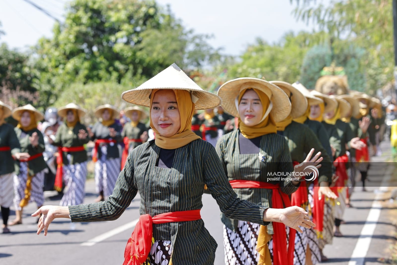 Warga RW 9 Kelurahan Josenan, Kecamatan Taman menggelar acara bersih desa, Jum'at, (05/08/2022). Sebagai pembuka puluhan warga mengadakan acara tari massal mengelilingi lingkungan Ngebrak mengenakan baju lurik dan bertopi capil. Acara akan dilanjutkan dengan doa selamatan bersama dan pagelaran Reog di Lapangan Ngebrak Josenan.