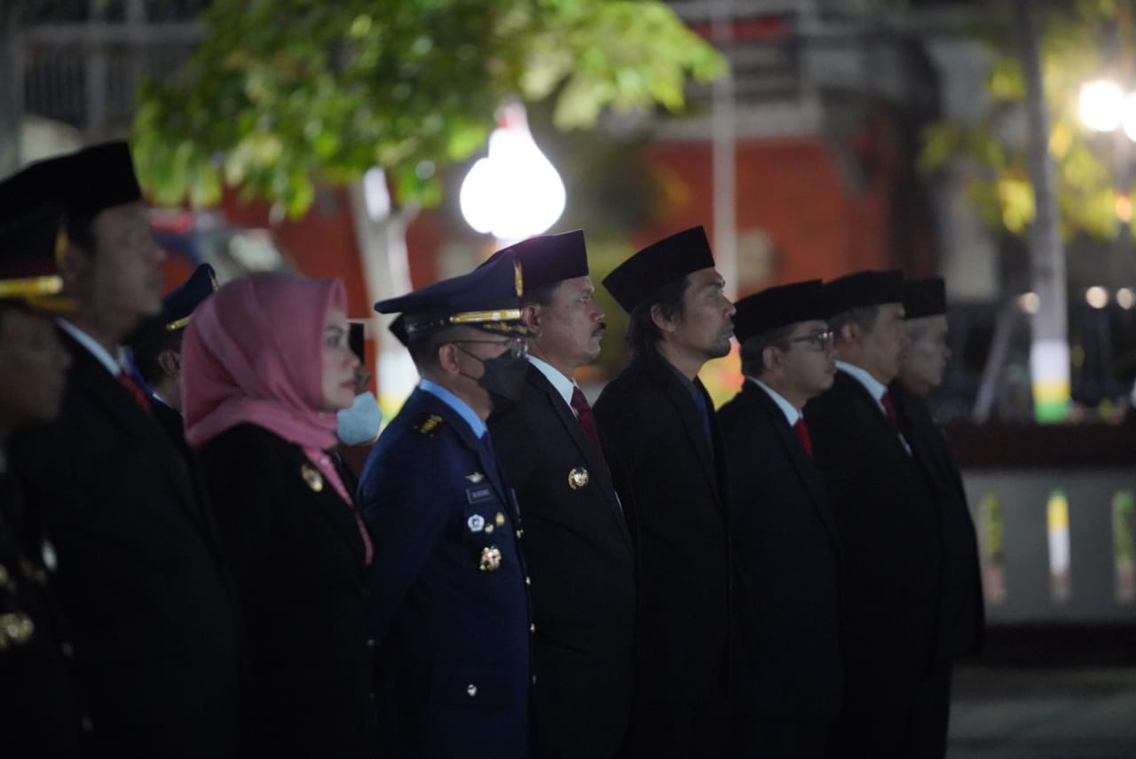 MADIUN – Apel Kehormatan dan Renungan Suci (AKRS) peringatan HUT ke-77 Kemerdekaan RI berlangsung khidmat, Rabu (17/8) tepat pukul 00.00. Kegiatan yang berlangsung di Taman Makam Pahlawan (TMP) Kota Madiun itu kembali tersaji seperti sebelum pandemi Covid-19 melanda. Jumlah pasukan tidak dikurangi seperti pada tahun lalu. Wali Kota dan Wakil Wali Kota Madiun mengikuti kegiatan yang dipimpin Danrem 081 Dhirotsaha Jaya Kolonel Infanteri Deni Rejeki tersebut.