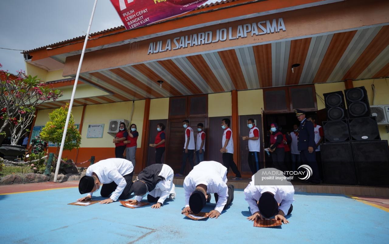 MADIUN - Sujud syukur tak dapat terelakkan kala para warga binaan pemasyarakatan (WBP) yang ada di Lapas Kelas I dan Lapas Pemuda Kelas IIA Madiun menerima surat keputusan pengurangan masa pidana atau remisi, Rabu (17/8).
