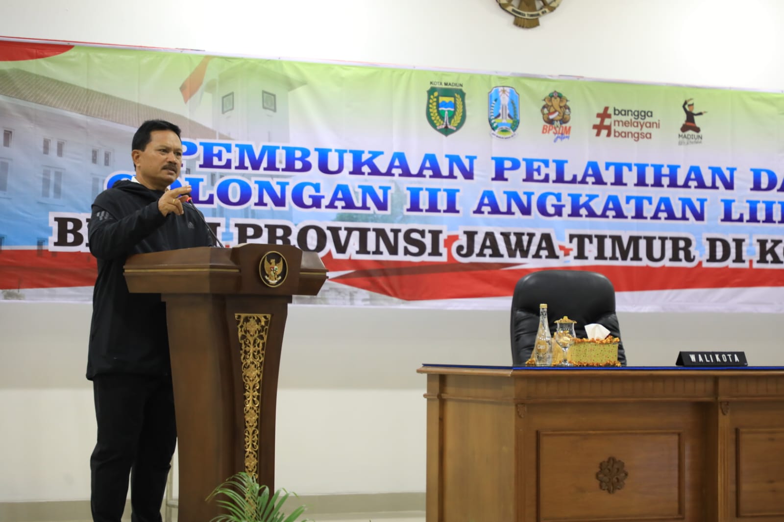 MADIUN – Pelatihan Dasar (Latsar) Calon Pegawai Negeri Sipil (CPNS) angkatan 53 di Kota Madiun resmi dimulai. Latsar CPNS golongan III tersebut dibuka Wali Kota Madiun, Maidi di gedung Diklat kota setempat, Jumat (19/8). Wali kota berharap melalui Latsar tersebut calon PNS bisa menjadi PNS yang berkualitas dan profesional.