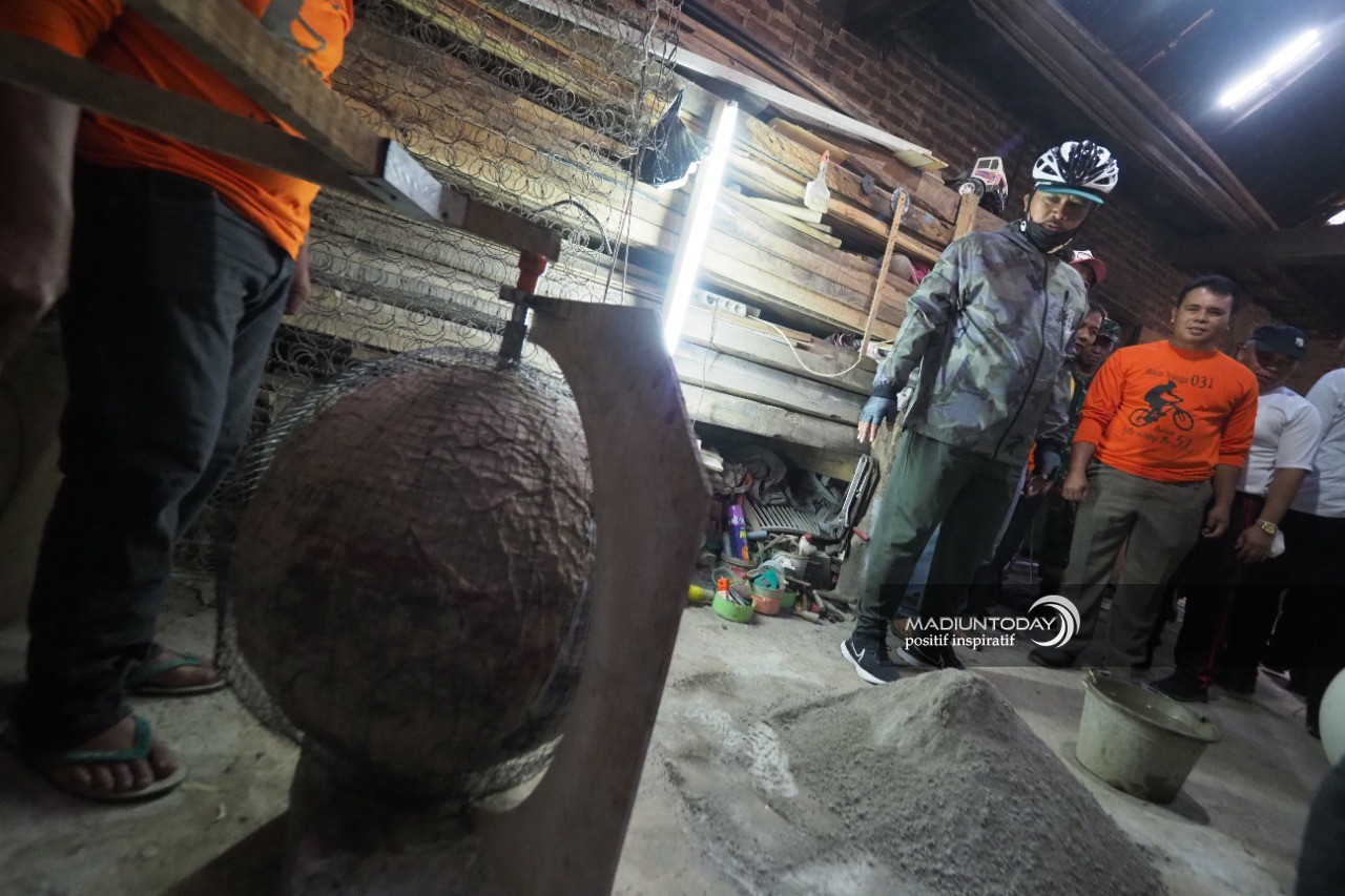 MADIUN – Ingat bulatan-bulatan dari beton cor di trotoar Jalan Pahlawan? Bulatan bernama bollard itu ternyata bikinan warga Kelurahan Demangan. Tepatnya di Jalan Jati Siwur. Ya, disana ada produksi bollard. Wali Kota Maidi meninjaunya bersamaan dengan gowes, Senin (22/8).