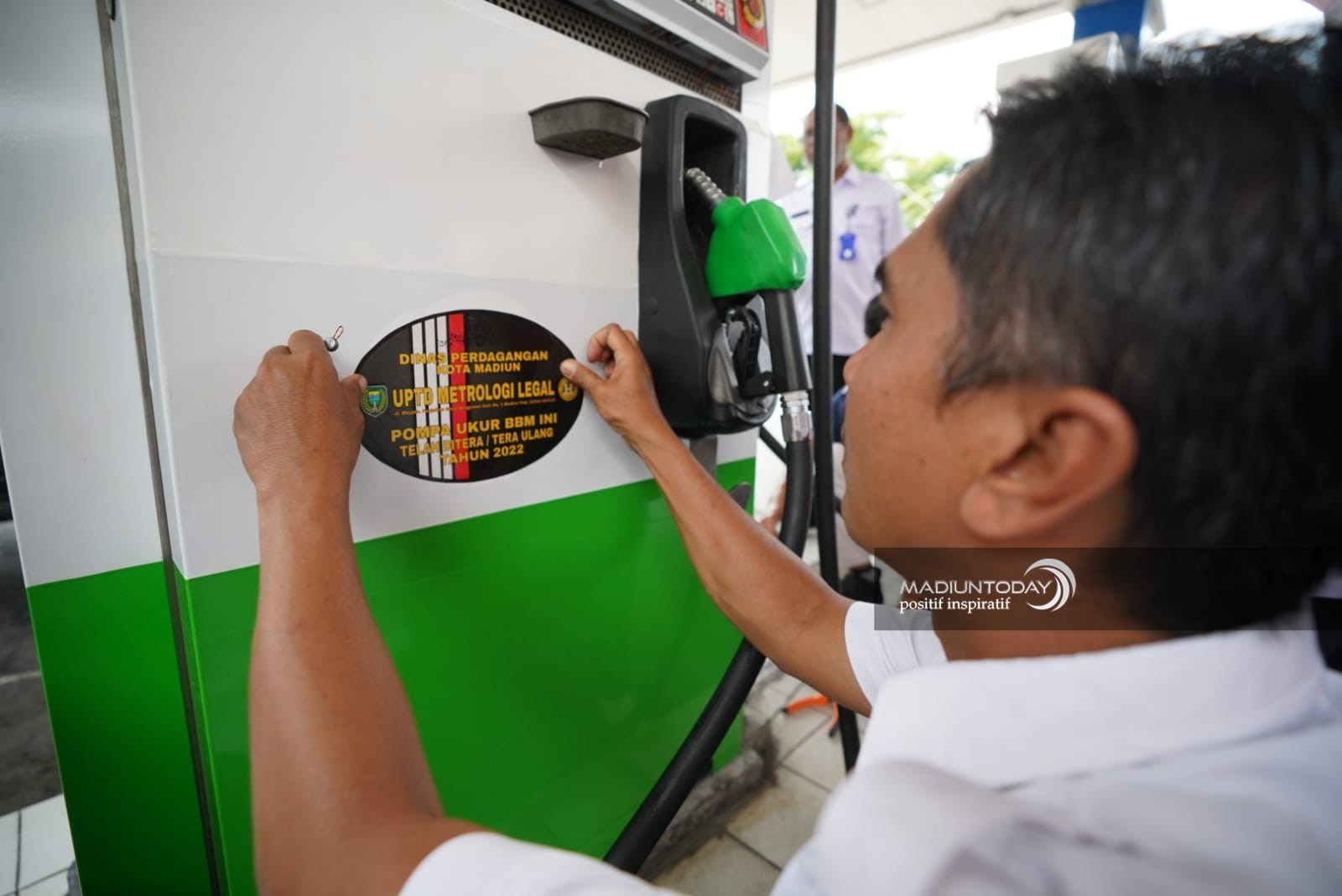 MADIUN – UPTD Metrologi Legal Dinas Perdagangan Kota Madiun melaksanakan uji tera ulang di sejumlah Stasiun Pengisian Bahan Bakar Umum (SPBU). Salah satunya, di SPBU Yos Sudarso, Rabu (31/8).