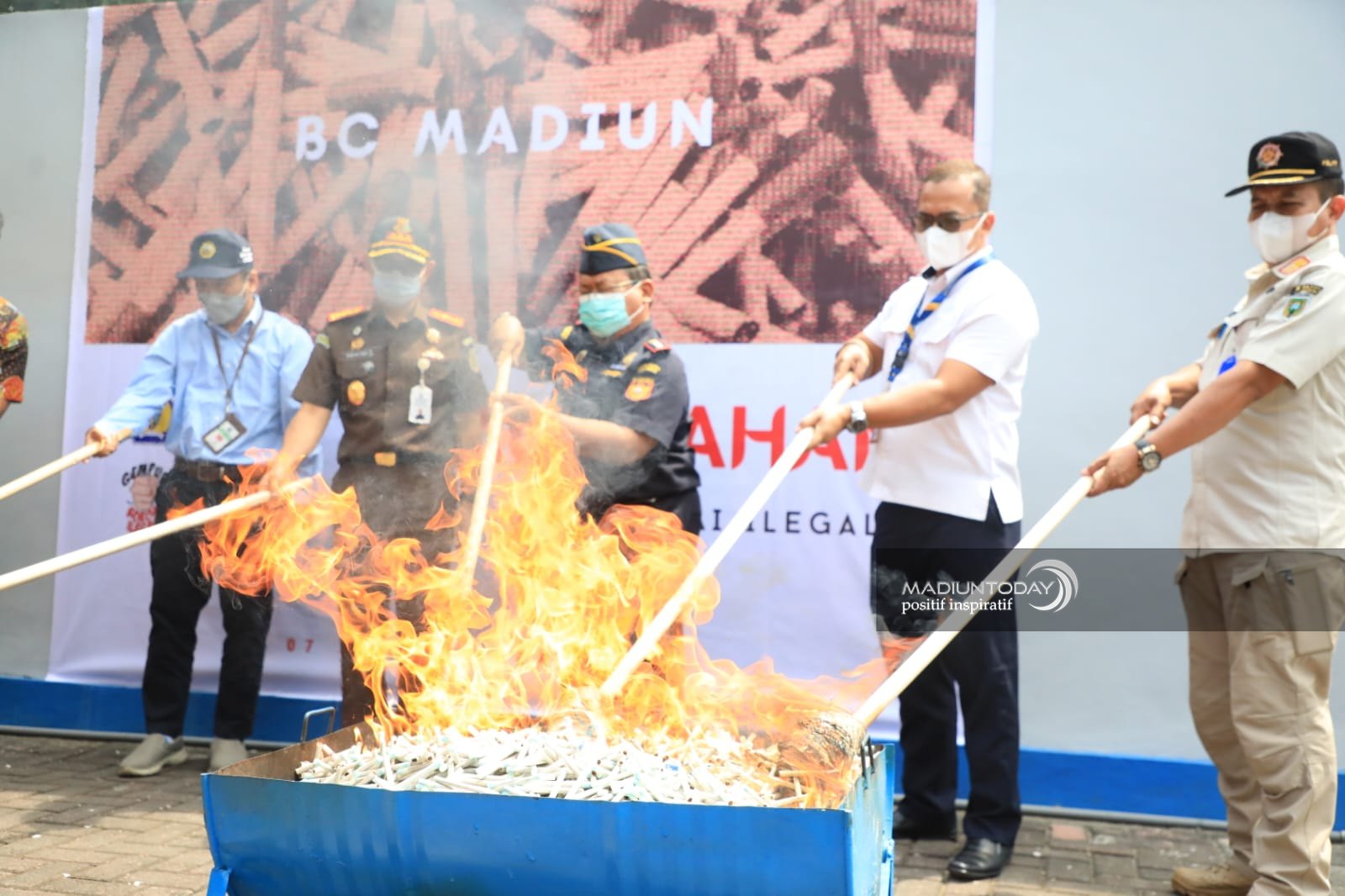 Dalam press release tersebut juga dilakukan pemusnahan barang kena cukai ilegal yang telah mendapat penetapan sebagai barang milik negara (BMN). Pemusnahan dilakukan dengan cara pembakaran oleh kepala KPPBC Madiun bersama perwakilan Kejaksaan Negeri Kota Madiun, Kejaksaan Negeri Kabupaten Madiun, KPKNL Madiun, Satpol PP dan Damkar Kota Madiun, Satpol PP Kabupaten Madiun, serta pimpinan JKN Madiun.