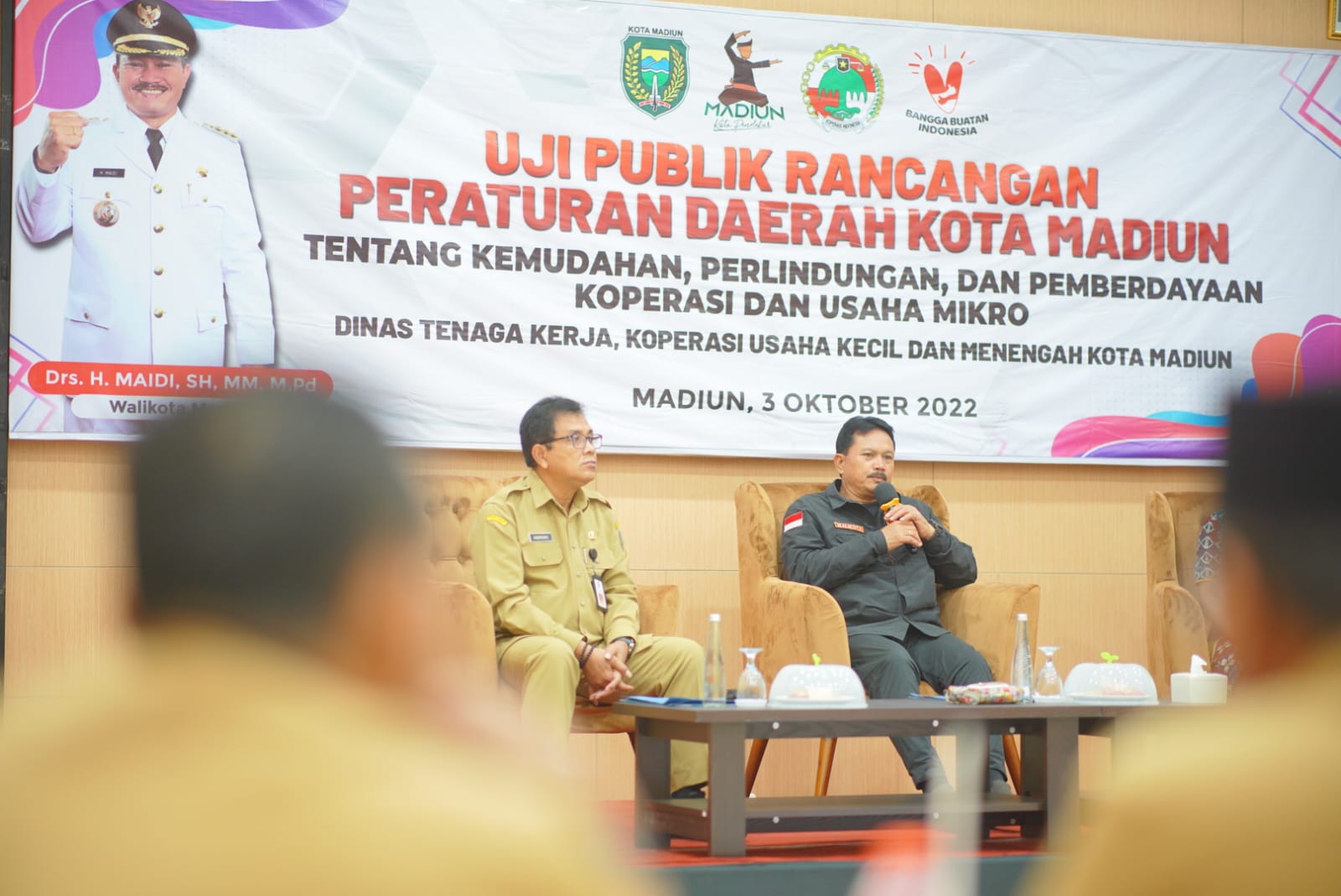MADIUN - Pemkot Madiun melalui Dinas Tenaga Kerja Koperasi Usaha Mikro dan Menengah menggelar uji publik rancangan peraturan daerah tentang kemudahan perlindungan dan pemberdayaan koperasi dan usaha mikro, Senin (3/10).