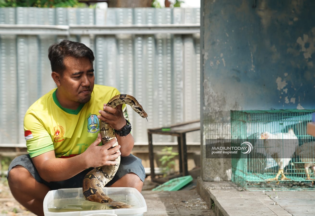 “Lebih mudah pelihara ular piton daripada harus pelihara ayam. Karena kalau piton makannya paling cepat 2 minggu sekali,” ujar pria yang berprofesi sebagai salah satu animal rescuer di BPBD Kota Madiun itu.