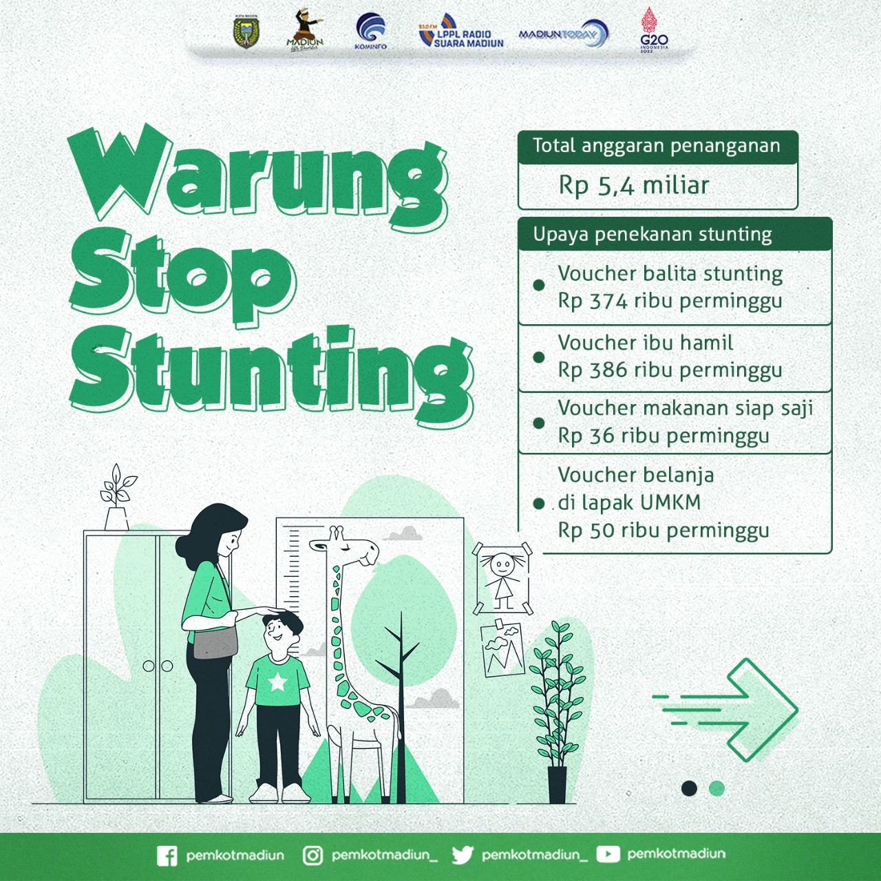 MADIUN – Upaya menekan stunting terus dilakukan Pemerintah Kota Madiun. Biarpun angka stunting Kota Madiun sudah di bawah target nasional, pemerintah setempat terus berupaya menekan stunting dengan mengalokasikan anggaran sampai Rp 5,4 miliar. Anggaran tersebut salah satunya untuk menekan stunting melalui Warung Stop Stunting (WSS). Nah, apa itu WSS dan bagaimana cara kerjanya?
