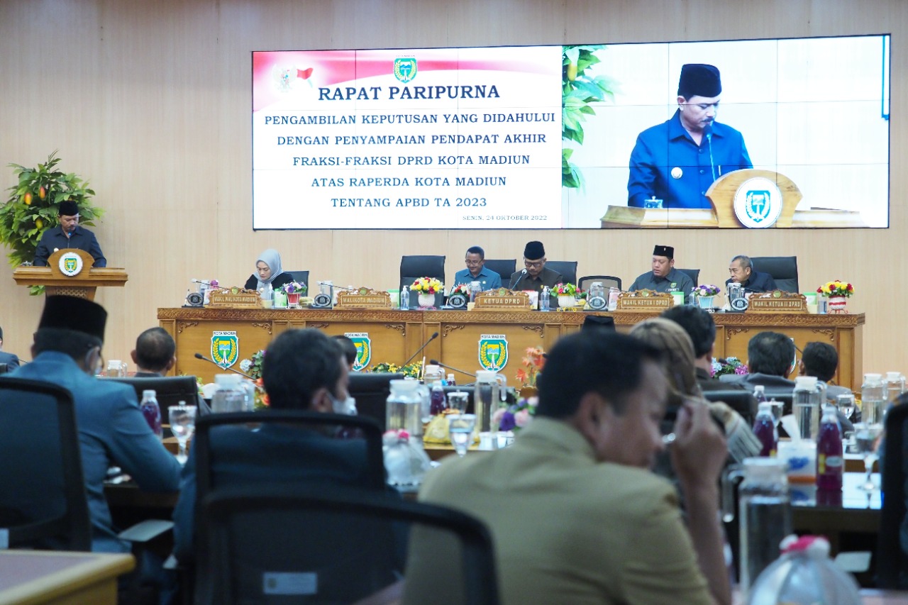MADIUN – Pembahasan APBD 2023 Kota Madiun berakhir. Tujuh fraksi DPRD Kota Madiun telah menyetujui Raperda APBD untuk dijalankan pada 2023 mendatang itu. Tak heran, Raperda pun di dok, Senin (24/10).
