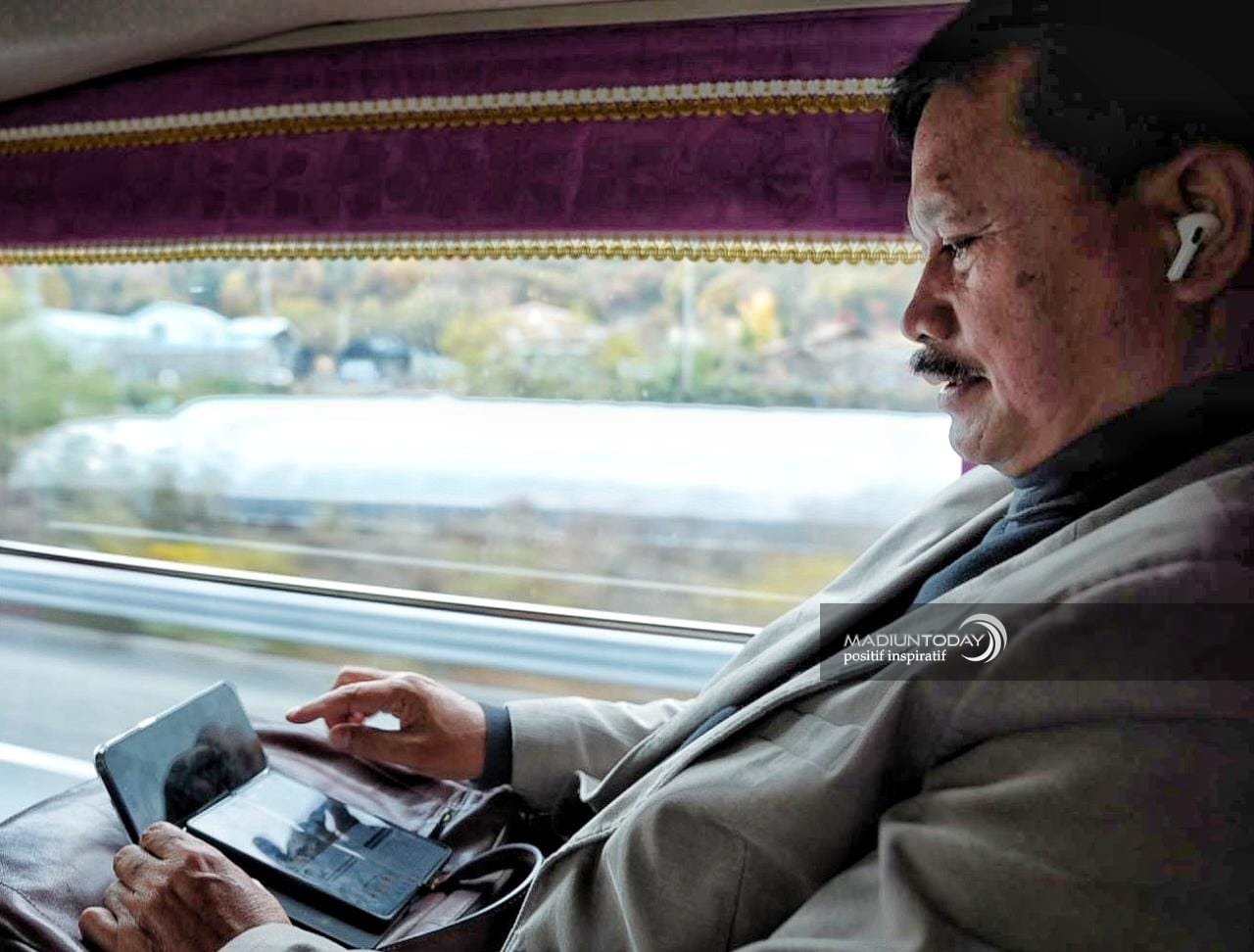 Wali Kota Maidi memang tengah melaksanakan kunjungan kerja ke Korea Selatan. Di Negeri Gingseng tersebut, salah satu agenda wali kota ialah mengunjungi Kota Daejeon untuk menghadiri Studi Banding Implementasi Kota Cerdas yang diselenggarakan oleh Kementerian Komunikasi dan Informatika. Nah, kebetulan bersamaan Monev KIP yang digelar Komisi Informasi Jawa Timur. Wali Kota Maidi terlihat mengikuti Monev di dalam perjalanan mobil di Negeri Ginseng tersebut.