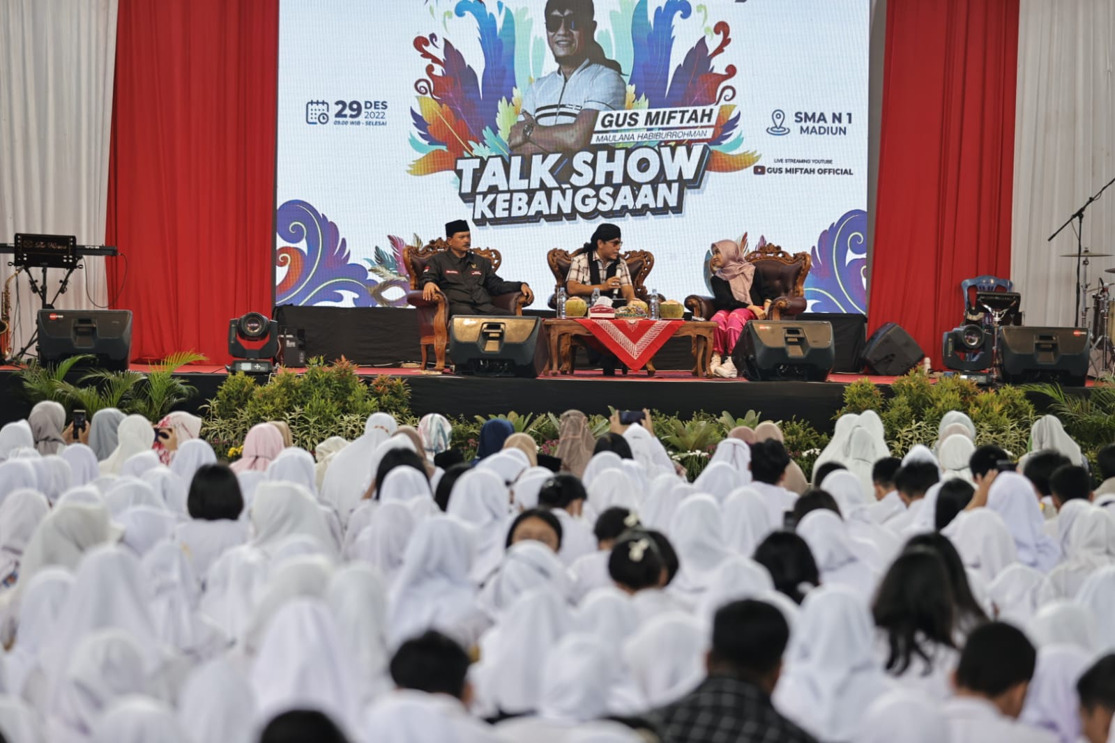 Kedatangan Gus Miftah dalam rangka memberikan edukasi kepada pelajar di SMAN 1 Kota Madiun, dikemas dalam bentuk dialog interaktif dengan memberikan pemahaman materi kebangsaan dan juga cara menanggulangi radikalisme dan cara toleransi antar umat beragama.