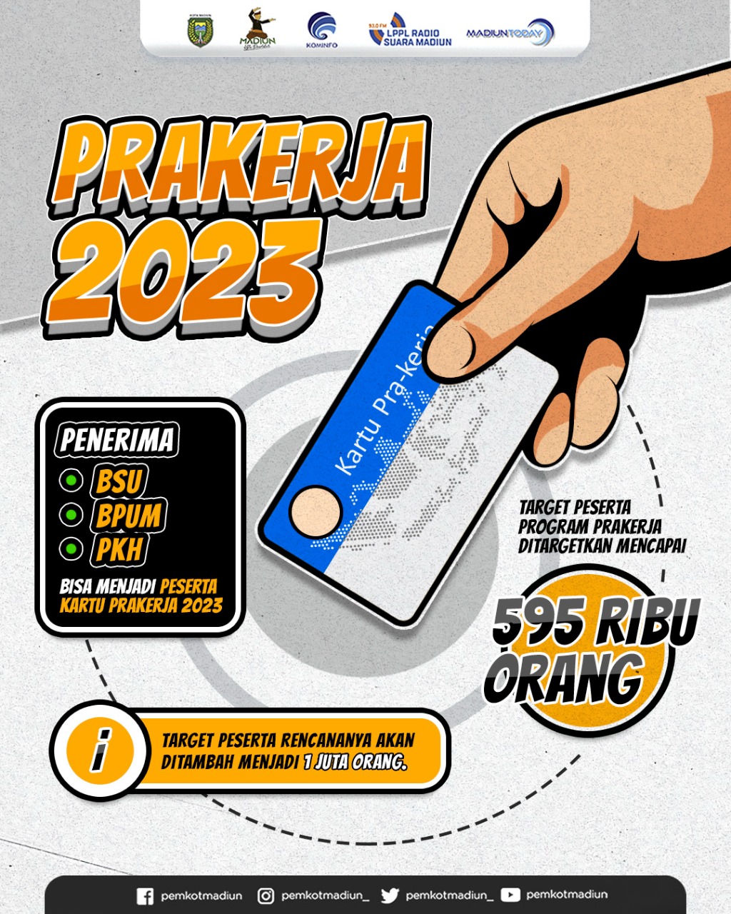 MADIUN - Menteri Koordinator Bidang Perekonomian Airlangga Hartarto mengatakan bahwa penerima bantuan subsidi upah (BSU), bantuan produktif usaha mikro (BPUM), dan program keluarga harapan (PKH) bisa menjadi peserta Kartu Prakerja 2023.