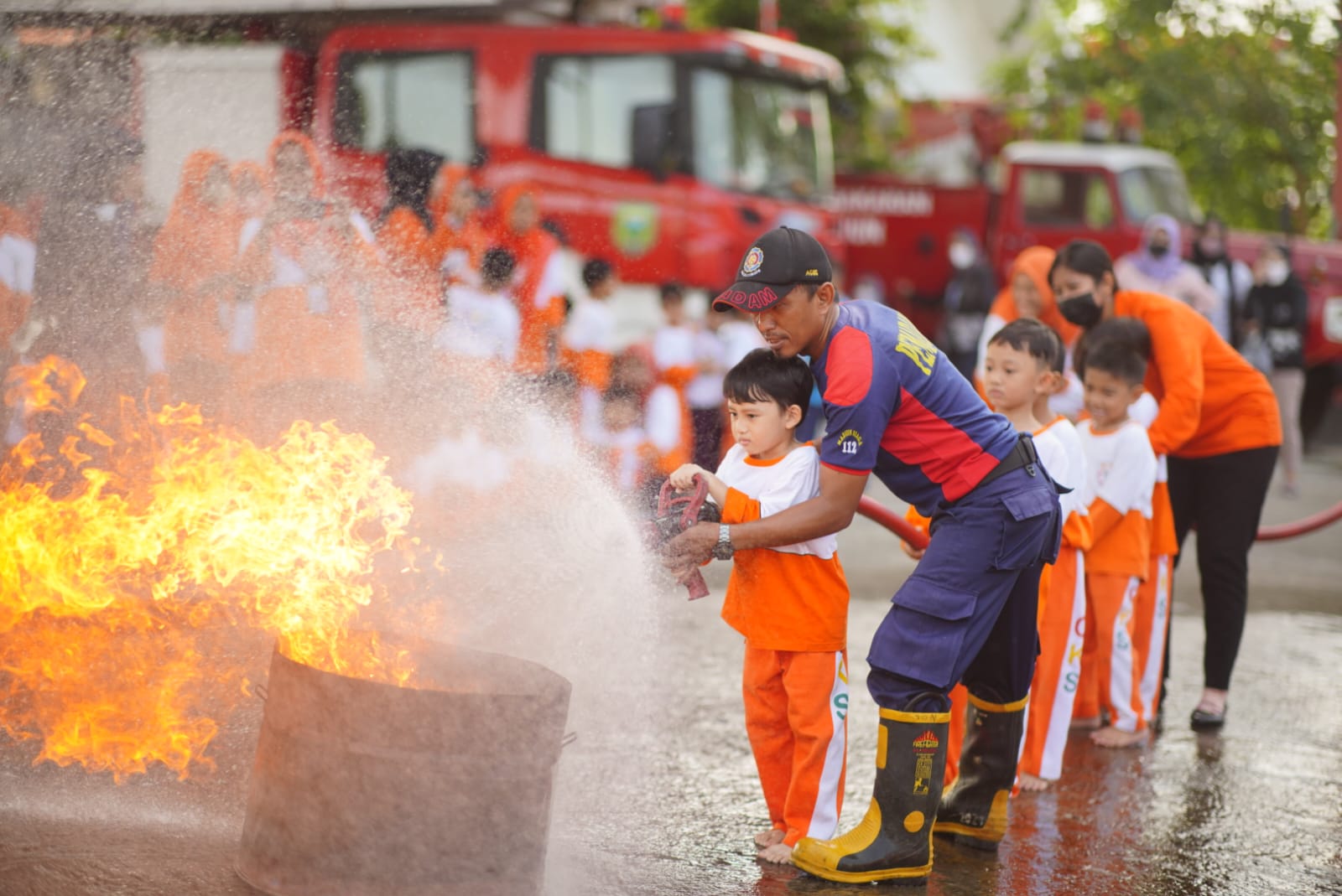 Personel pemadam kebakaran Kota Madiun memberikan pengetahuan tentang seluk beluk profesi pemadam kebakaran kepada puluhan siswa-siswi TK dan Paud yang berkunjung ke Base Camp, Selasa kemarin, (21/02/2023). Tidak hanya mengenal tugas dan alat pemadam kebakaran, siswa-siswi ini juga mendapat kesempatan mengenal api dan cara mengendalikanya. Anak-anak dikenalkan tekhnik dan metode pemadaman api, baik cara konvensional menggunakan kain basah maupun menggunakan nozzle yang terhubung dengan mobil PMK. Anak-anak mengikuti kegiatan dengan antusias mengikuti petunjuk personel PMK. Acara ditutup dengan mandi dengan hujan buatan yang disemprotkan dari truk PMK. WS Hendro/madiuntoday.id