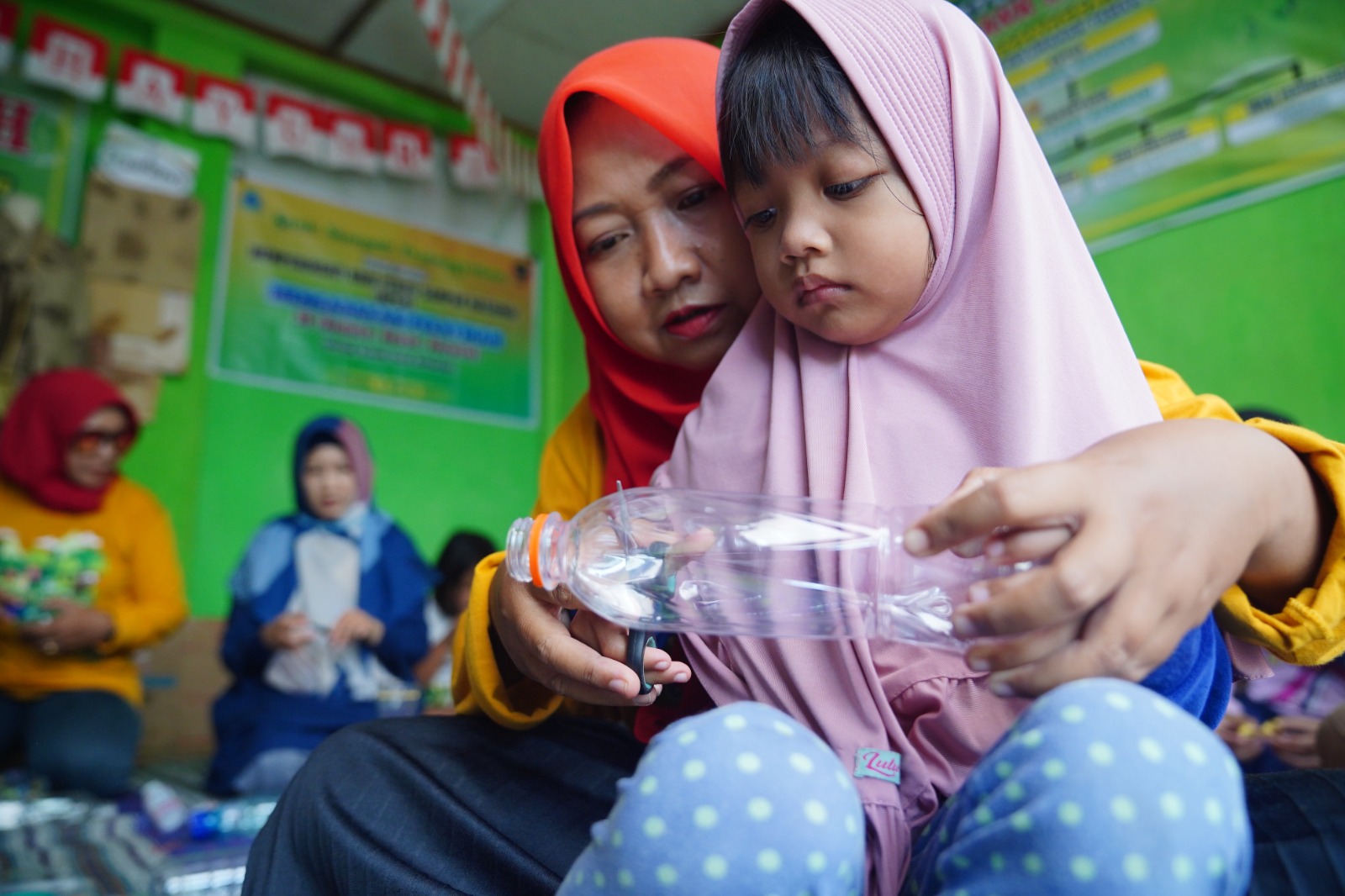 “Selain anaka-anak, ibu-ibu PKK juga diajarkan pengolahan sampah. Salah satu karyanya itu goodie bag dari bungkus minuman kemasan lalu kita jual di Lapak UMKM,” akunya.