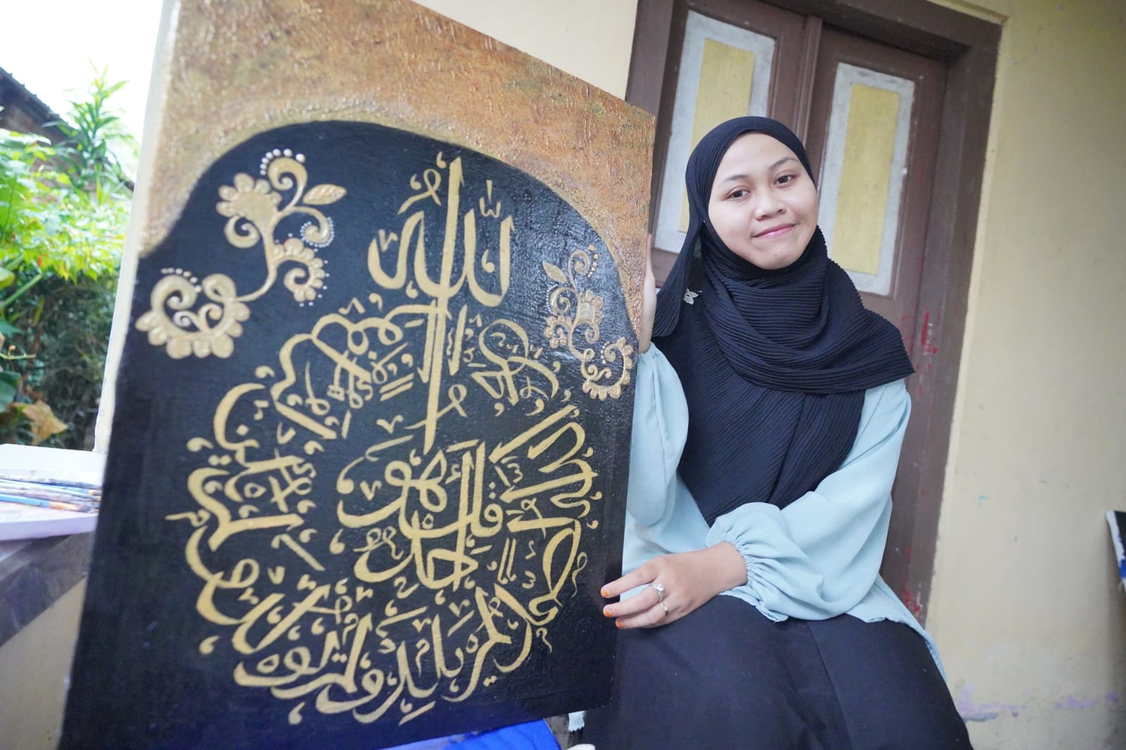 ‘’Sebenarnya belajar kaligrafi baru-bari ini saja. Sebelumnya lebih banyak melukis,’’ tuturnya.