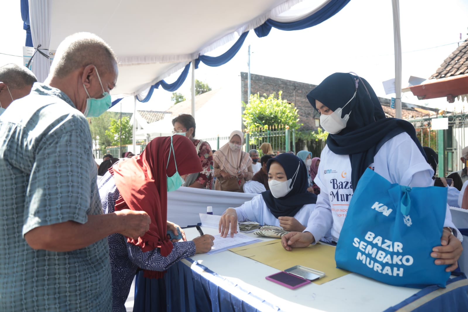 MADIUN - PT KAI Daop 7 Madiun menggelar bazar murah Ramadan. Bazar tersebut digelar di depan Stasiun Madiun, Rabu (12/4). Sebanyak 1000 paket sembako disiapkan untuk masyarakat umum dan masyarakat sekitar lingkungan kerja PT KAI Daop 7.