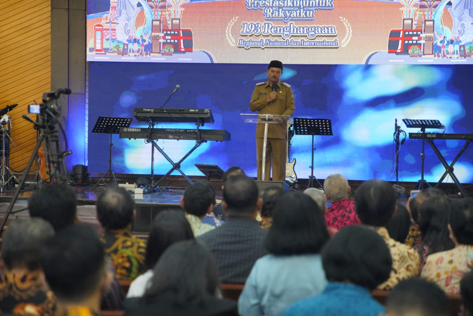 Dalam kegiatan tersebut, orang nomor satu di Kota Pendekar itu berkesempatan memberikan sambutan. Dalam sambutannya, wali kota menampilkan sejumlah kemajuan yang telah diraih Kota Madiun hingga saat ini. Termasuk, 193 penghargaan yang berhasil diraih selama masa kepemimpinannya.