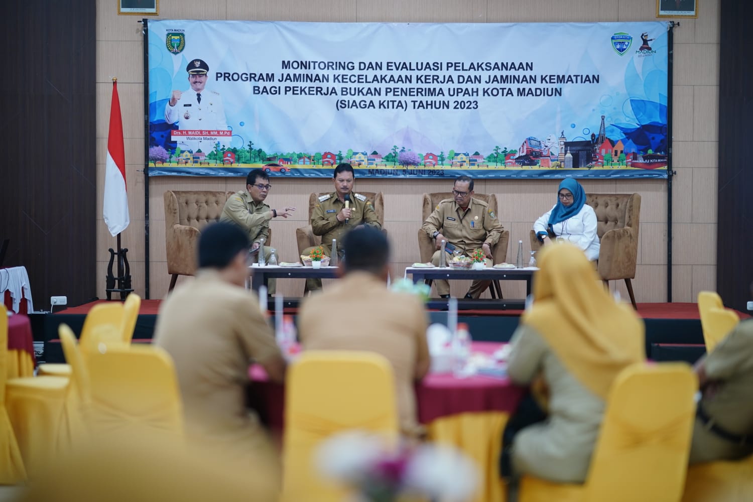 ‘’Jadi untuk jumlahnya dinamis selalu berubah. Karena pastinya ada yang meninggal. Nah, ke depan akan kita perluas,’’ kata wali kota usai monitoring dan evaluasi pelaksanaan program jaminan kecelakaan kerja dan jaminan kematian bagi pekerja bukan penerima upah Kota Madiun (Siaga Kita) 2023.