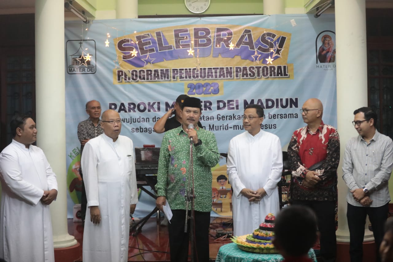 MADIUN - Wali Kota Madiun Maidi turut menghadiri dan membuka event Bazar UMKM Gereja Katolik Paroki Mater Dei, Kelurahan Klegen, Sabtu (24/6).