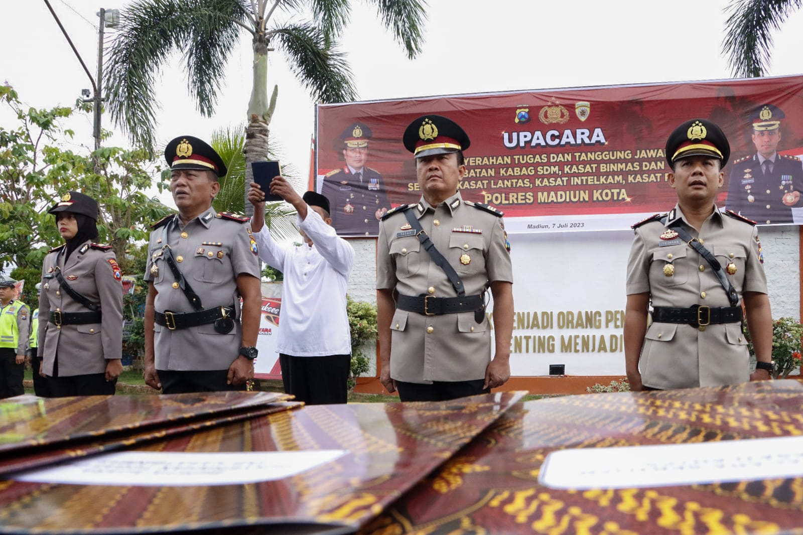 Selanjutnya Kasat Intelkam Polres Madiun Kota, AKP Indo Jatmiko dimutasi sebagai Panit I Subdit I Ditintelkam Polda Jatim. Berikutnya Iptu Heru Santoso yang sebelumnya menjabat Paur Bagops Polres Madiun, kini dipercaya sebagai pejabat sementara Kasat Intelkam Polres Madiun Kota. Serta posisi Kabag SDM Polres Madiun Kota dijabat Kompol Agung Purnomo yang sebelumnya dengan jabatan yang sama berdinas di Polres Pacitan. (rams/agi/madiuntoday)