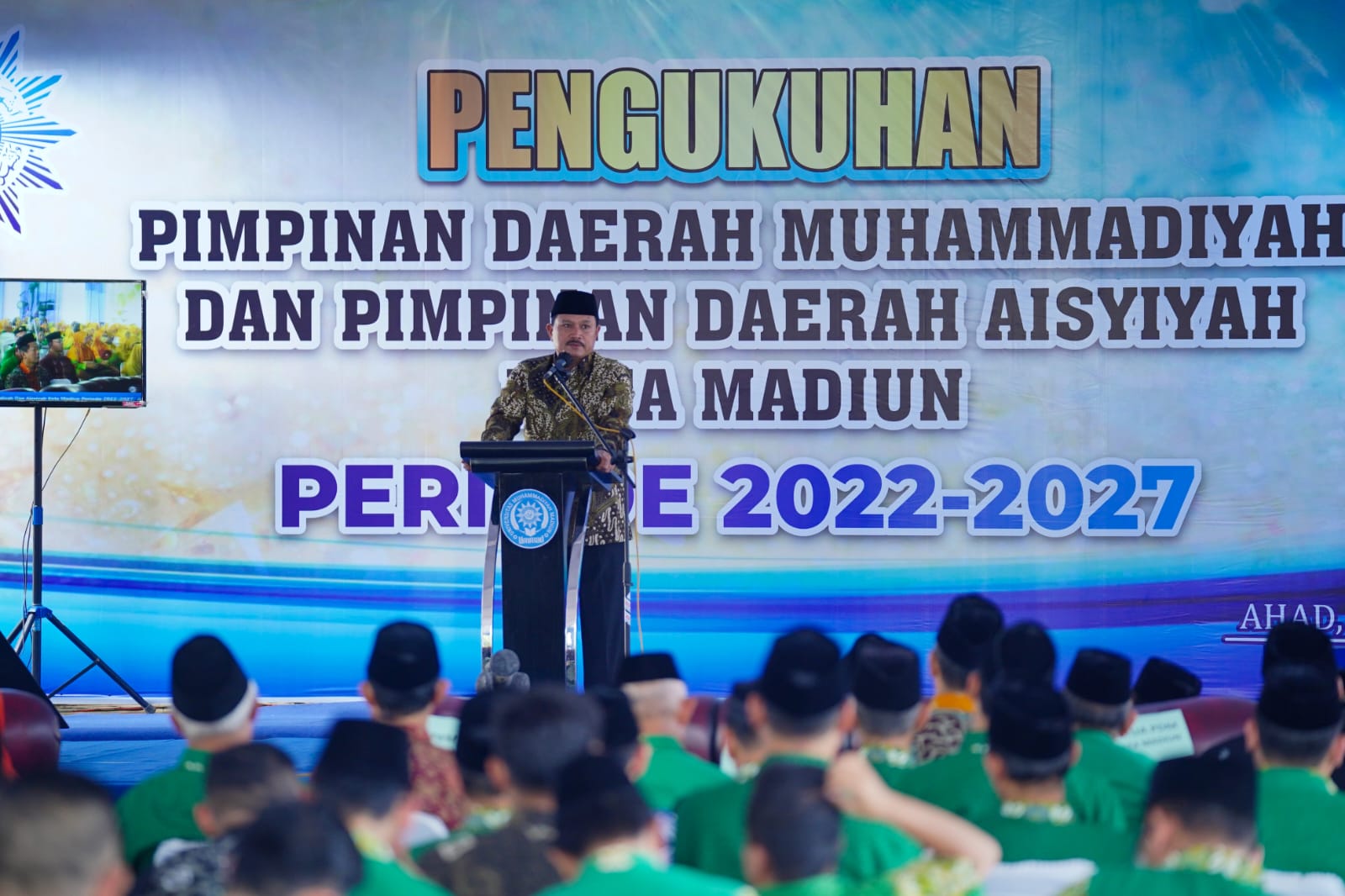 MADIUN - Pimpinan Daerah (PD) Muhammadiyah dan Aisiyah Kota Madiun menggelar prosesi pelantikan dan pengukuhan pengurus baru masa bakti 2022-2027.