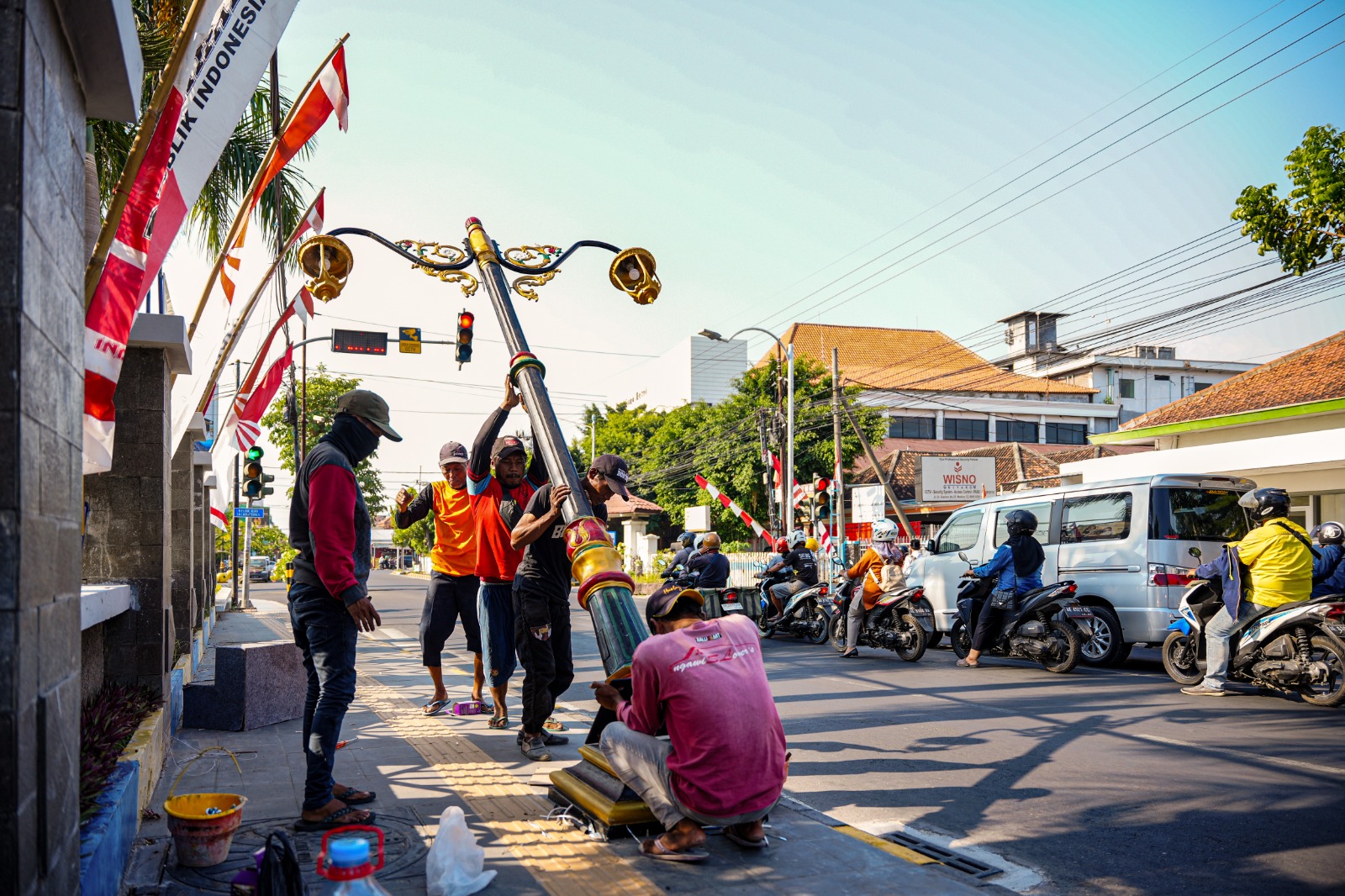 ‘’Total ada 65 tiang sedang proses pasang. Kalau keseluruhan pekerjaan sudah 95 persen,’’ kata Kepala Dinas Pekerjaan Umum dan Penataan Ruang (PUPUR) Kota Madiun, Thariq Megah, Senin (28/8).