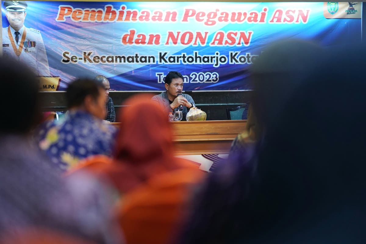 KARANGANYAR – Aparatur Sipil Negara (ASN) merupakan pelayan masyarakat. Harus melayani dan bukan dilayani. Dalam melayani pun tidak boleh sekedarnya. Tetapi pelayanan yang diberikan juga harus prima. Karenanya, pembinaan rutin digelar Pemerintah Kota Madiun kepada para ASN-nya. Seperti pembinaan kepada pegawai ASN maupun non ASN lingkup Kecamatan Kartoharjo yang berlangsung di Pondok Sari II Tawangmangu, Karanganyar, Jumat (24/11) malam. Pembinaan makin mengena karena dilakukan langsung Wali Kota Madiun, Maidi Dr. Maidi.