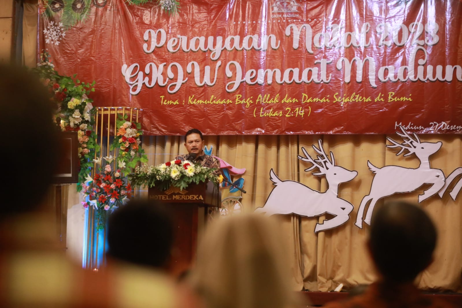 MADIUN - Wali Kota Madiun Dr.Maidi menghadiri perayaan Natal yang digelar warga GKJW Madiun di Hotel Merdeka, Rabu (27/12) malam.