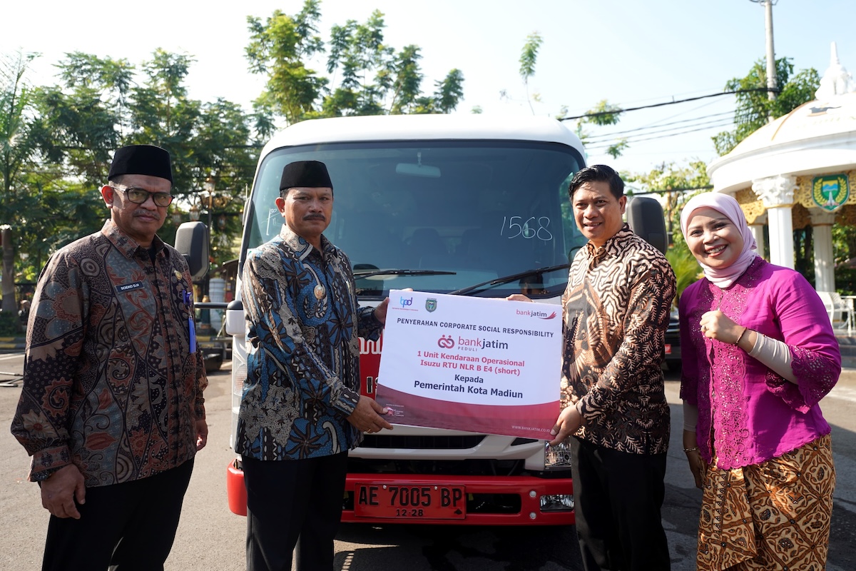 MADIUN - Wali Kota Madiun, Dr. Maidi menerima langsung corporate social responsibility (CSR) dari Bank Jatim berupa satu unit kendaraan operasional Isuzu RTU NLR B E4 (short) untuk Pemkot Madiun